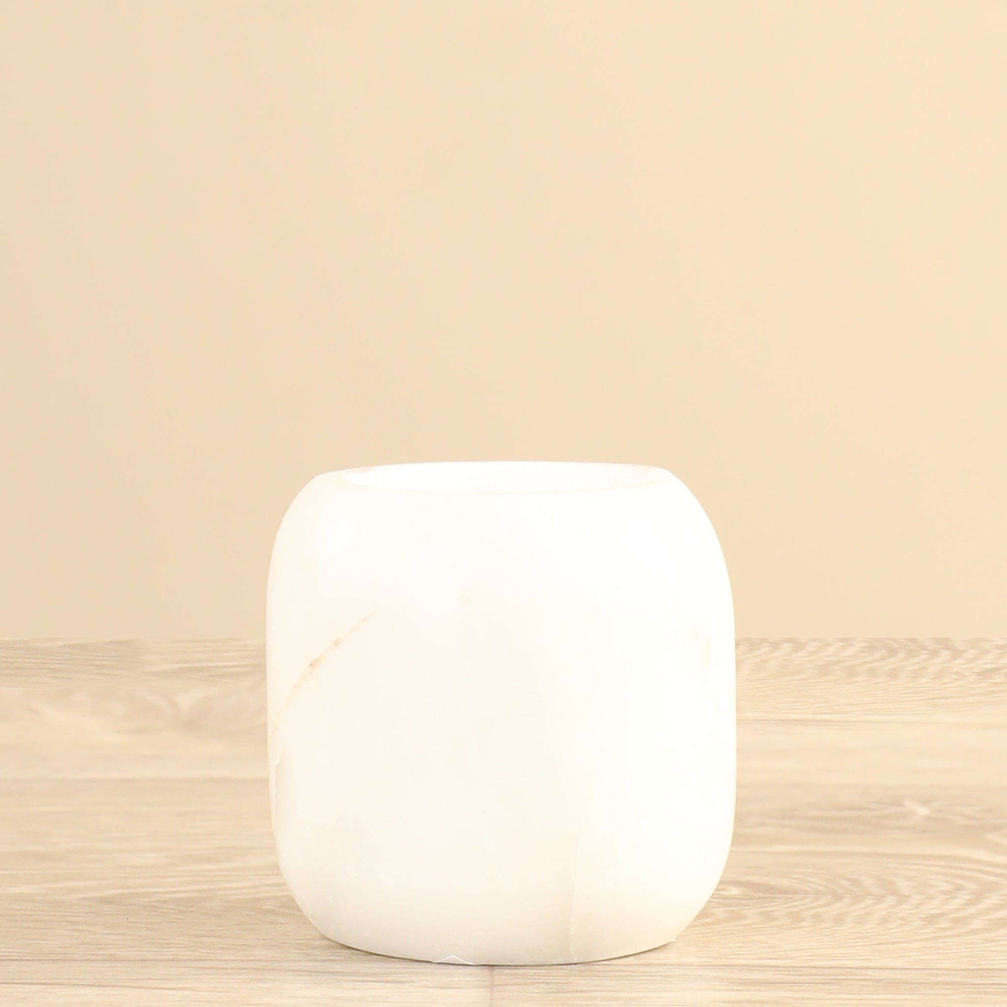 Sometimes it’s the small accent pieces that make a room look complete – and this minimalist candle holder is just that piece. It is made from lustrous marble and has a finish that catches and reflects light, drawing all eyes to this decor. Hollowed out to hold a pillar candle this candle holder is well suited to a contemporary or transitional decorating style.
