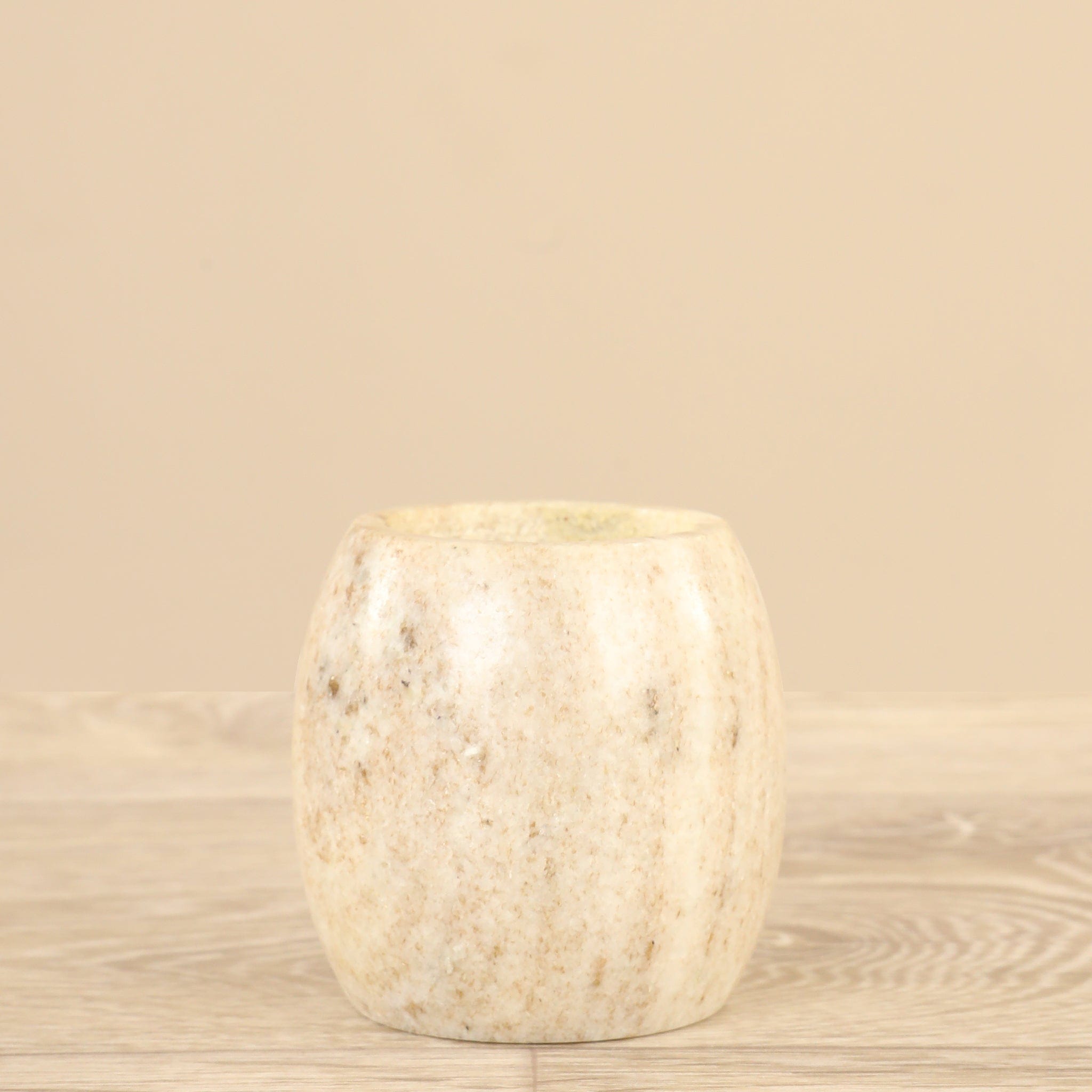 Sometimes it’s the small accent pieces that make a room look complete – and this minimalist candle holder is just that piece. It is made from lustrous marble and has a finish that catches and reflects light, drawing all eyes to this decor. Hollowed out to hold a pillar candle this candle holder is well suited to a contemporary or transitional decorating style.
