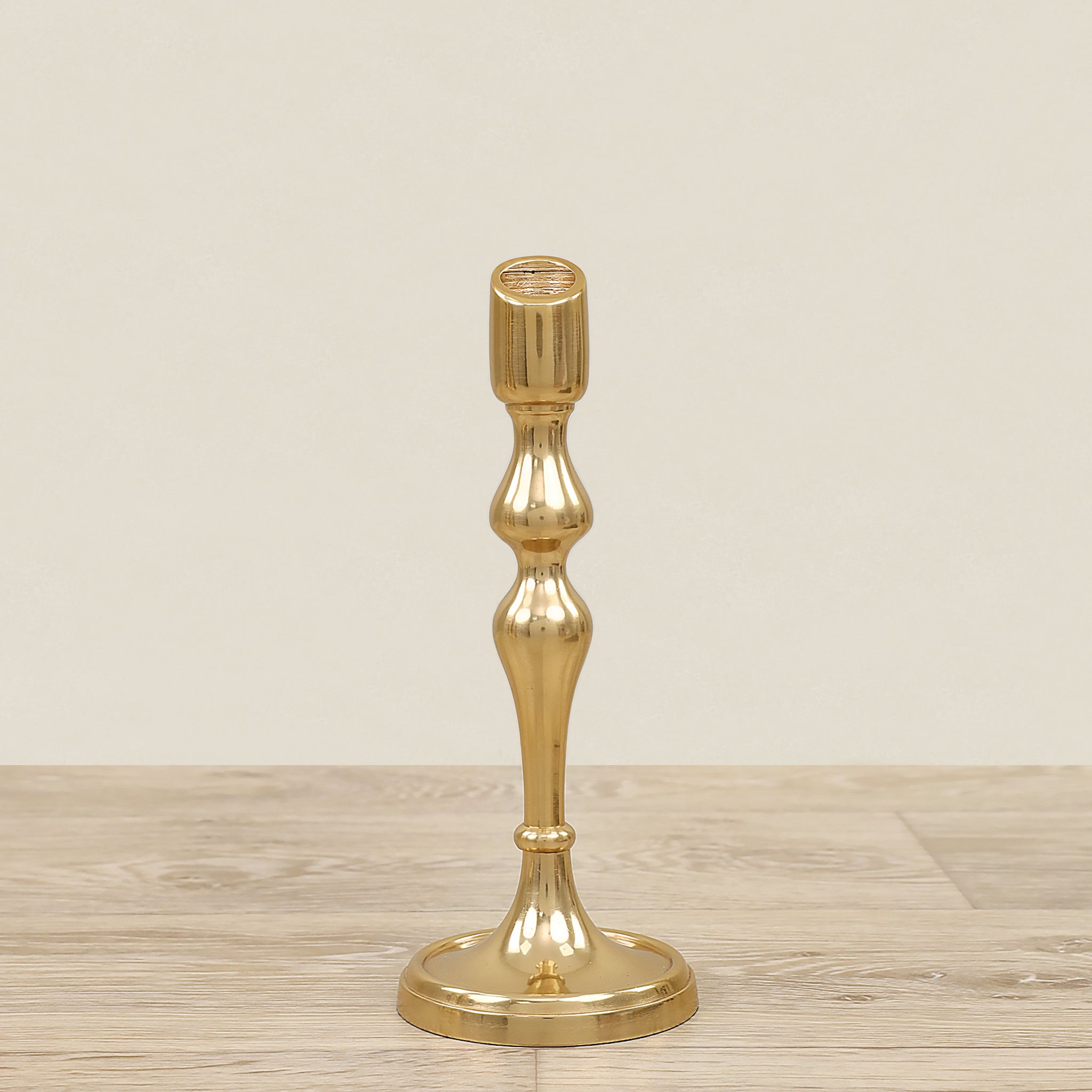 Ideal for dining table centerpieces, mantel displays, or as a decorative accent in any room, our Metal Candle Holder creates a serene and sophisticated ambiance. Light up your space with this enchanting piece and let the soft glow of taper candles enhance the natural beauty of your decor.