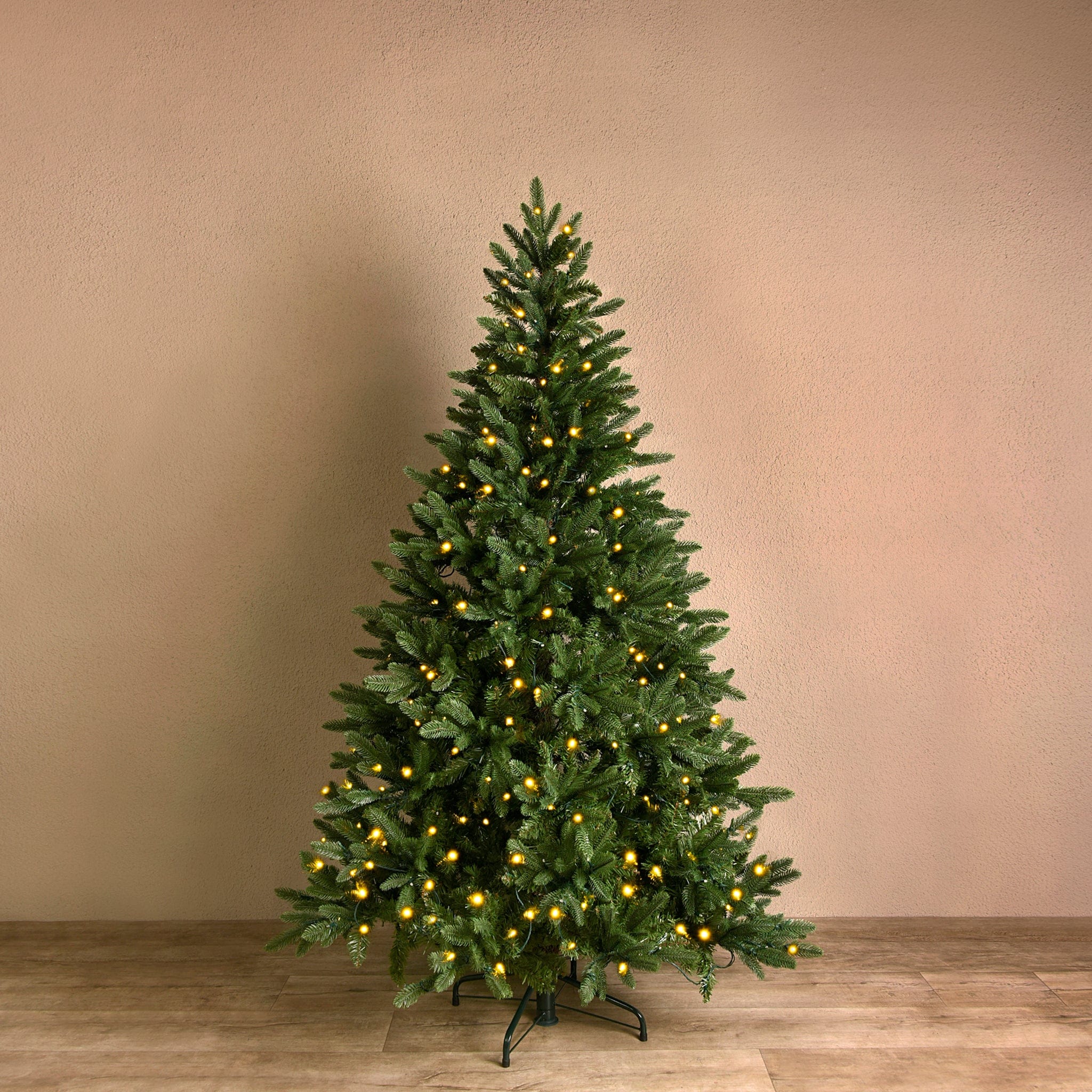 Seated on a durable metal stand, this beautiful prelit Christmas Tree is the perfect accessory for a sparkling and festive holiday season. Designed with the utmost care and high-quality materials, this artificial Christmas Tree has a classic shape, full branches, and realistic needles to lend natural beauty to your home.