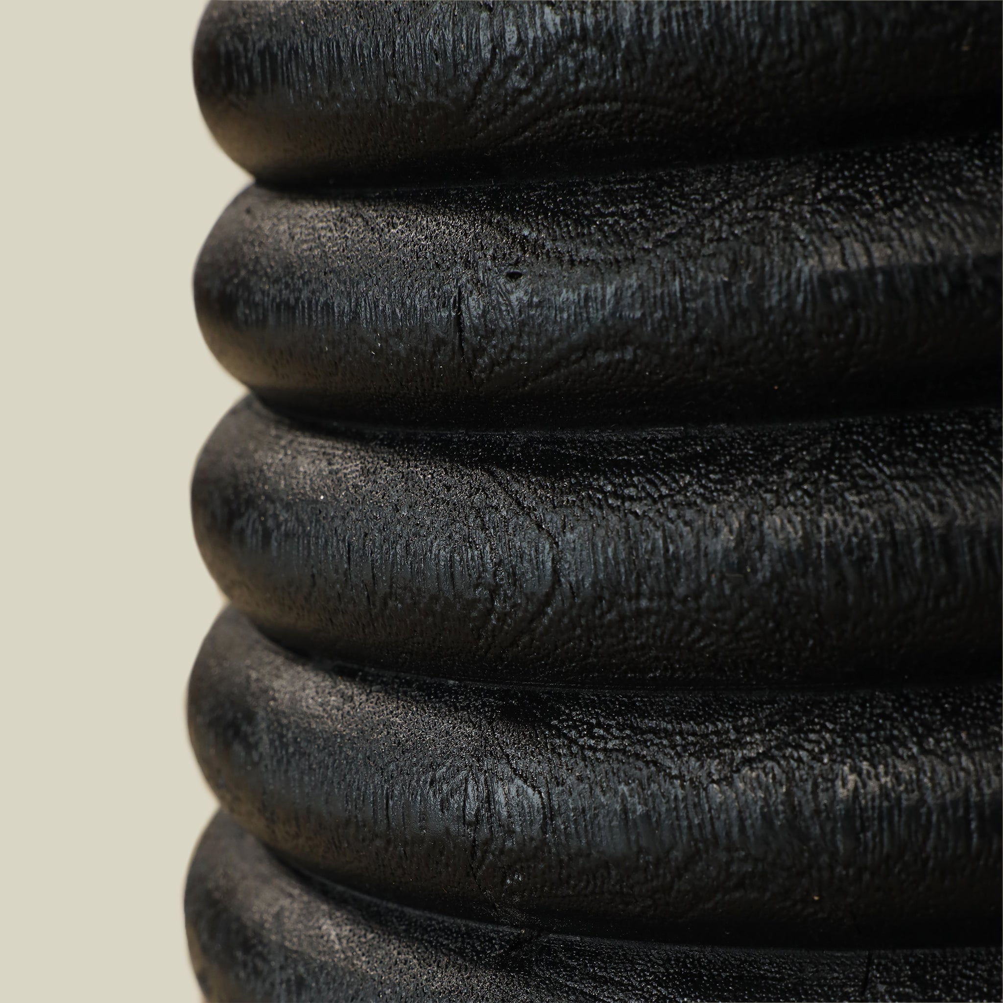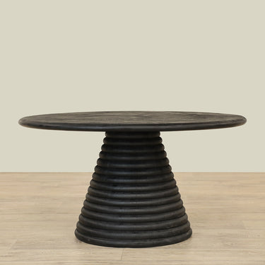 Made from luxurious wood and ratan, this sleek black table is the perfect addition to any living space.