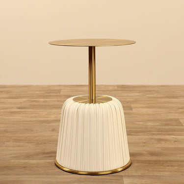 Lend a polished look to seating with a modern table. Designed to coordinate beautifully the Lia tables all feature modern PU leather-covered bases and round tops with chrome gold stainless steel accents.