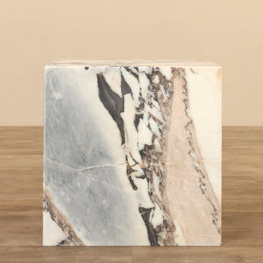 Constructed from pure marble stone the Poppy Side Table is all you need for a glamorous and practical look. Its sleek cube shape and smooth finish will pair well with wood or metal pieces as well as upholstered pieces.