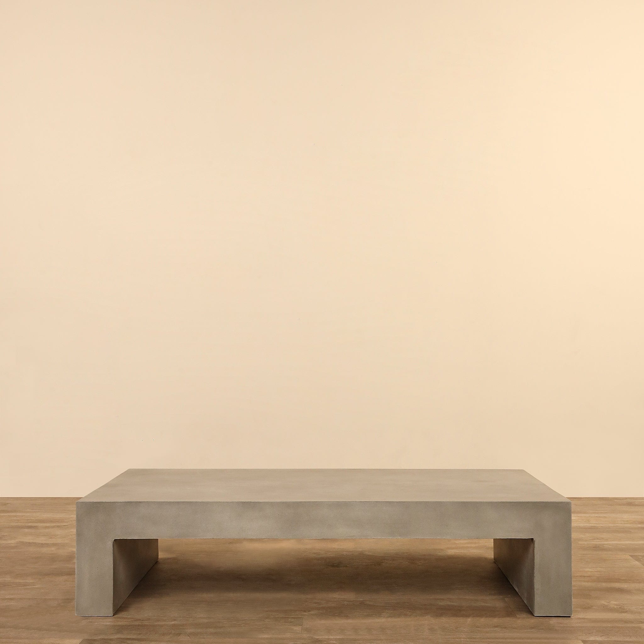 Sleek and spare, this contemporary coffee table is crafted in concrete for a solid look and feel. Suitable for indoor or outdoor use this modern concrete coffee table is supported at either end for a mid-century modern touch.