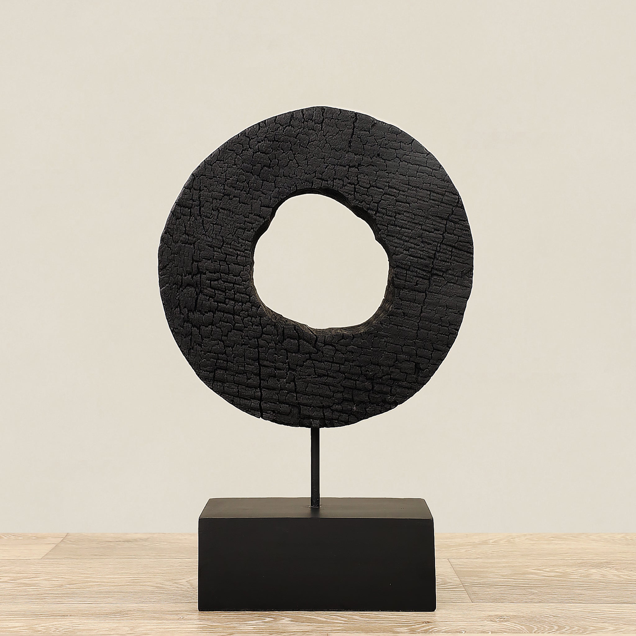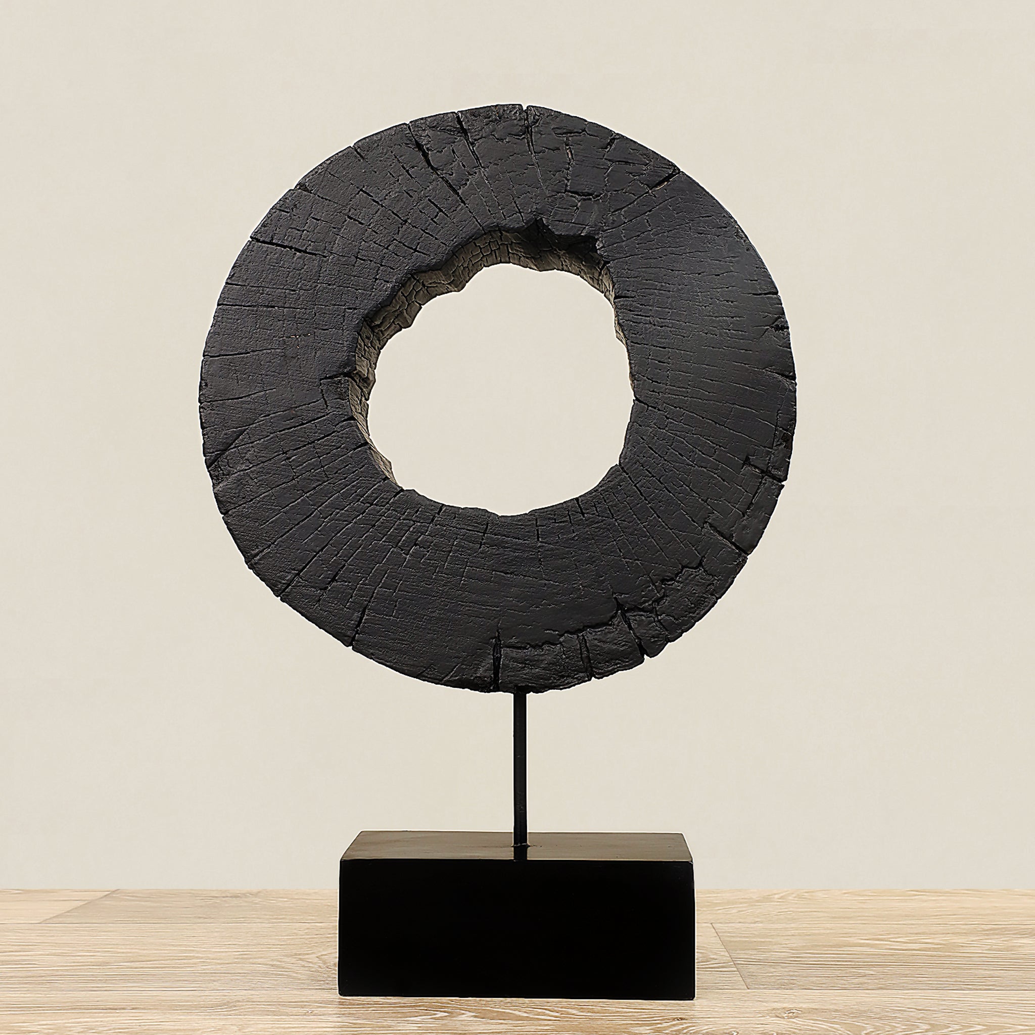 Crafted from rich mango wood, the sculpture boasts a natural texture that coordinates beautifully with its sleek black base. The wood’s solidity adds depth and sophistication, while the bold black base anchors the piece, enhancing its modern aesthetic.