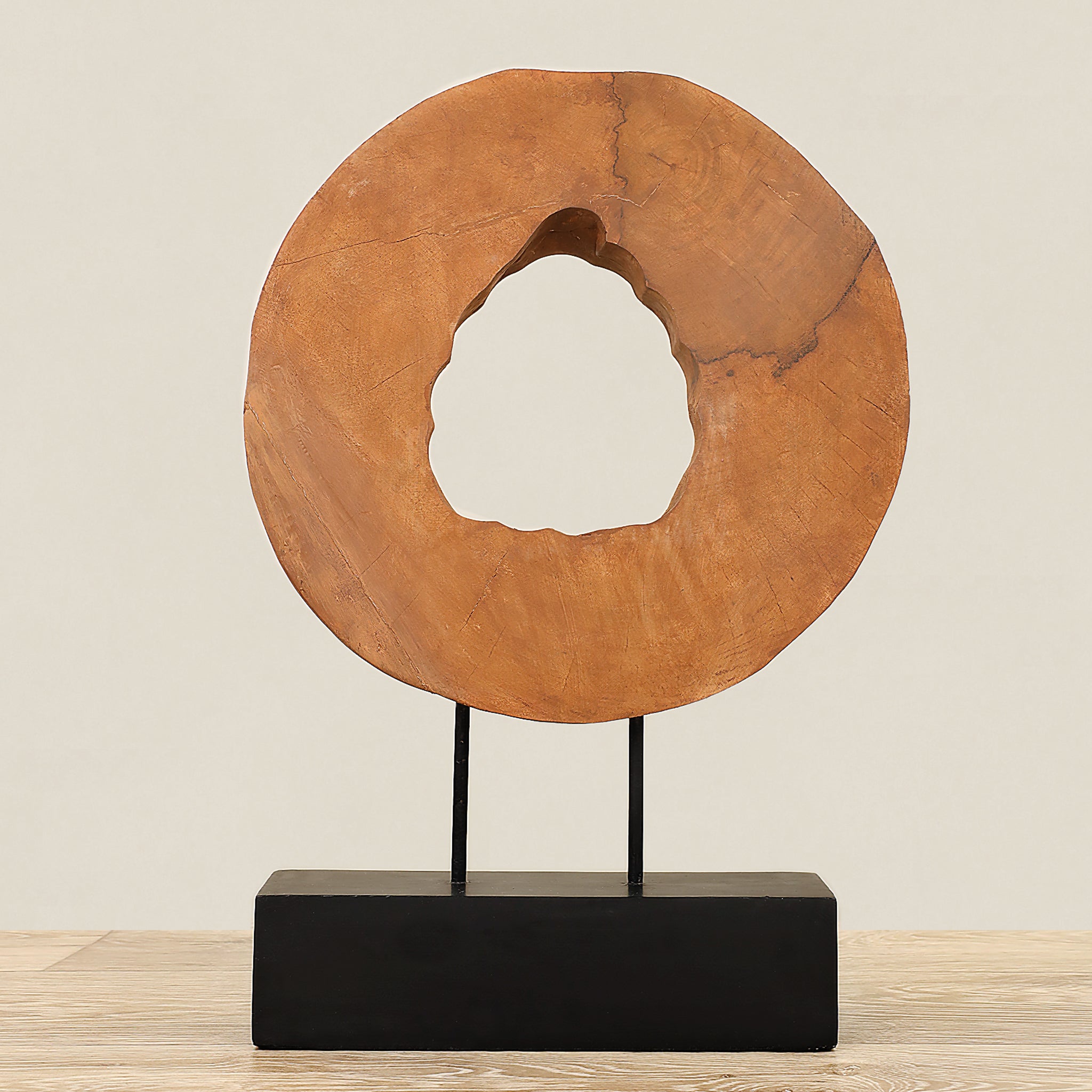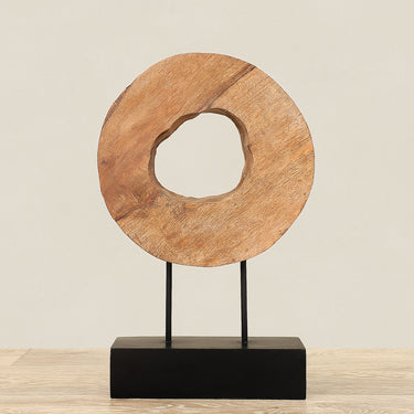 Crafted from rich mango wood, the sculpture boasts a natural texture that contrasts beautifully with its sleek black base. The wood’s solidity adds depth and sophistication, while the bold black base anchors the piece, enhancing its modern aesthetic.