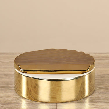 A dainty box fit for the prettiest treasures. Crafted in white and gold, this round box features a removable, scalloped lid. Keep it in your bathroom or bedroom to hold small items and trinkets.