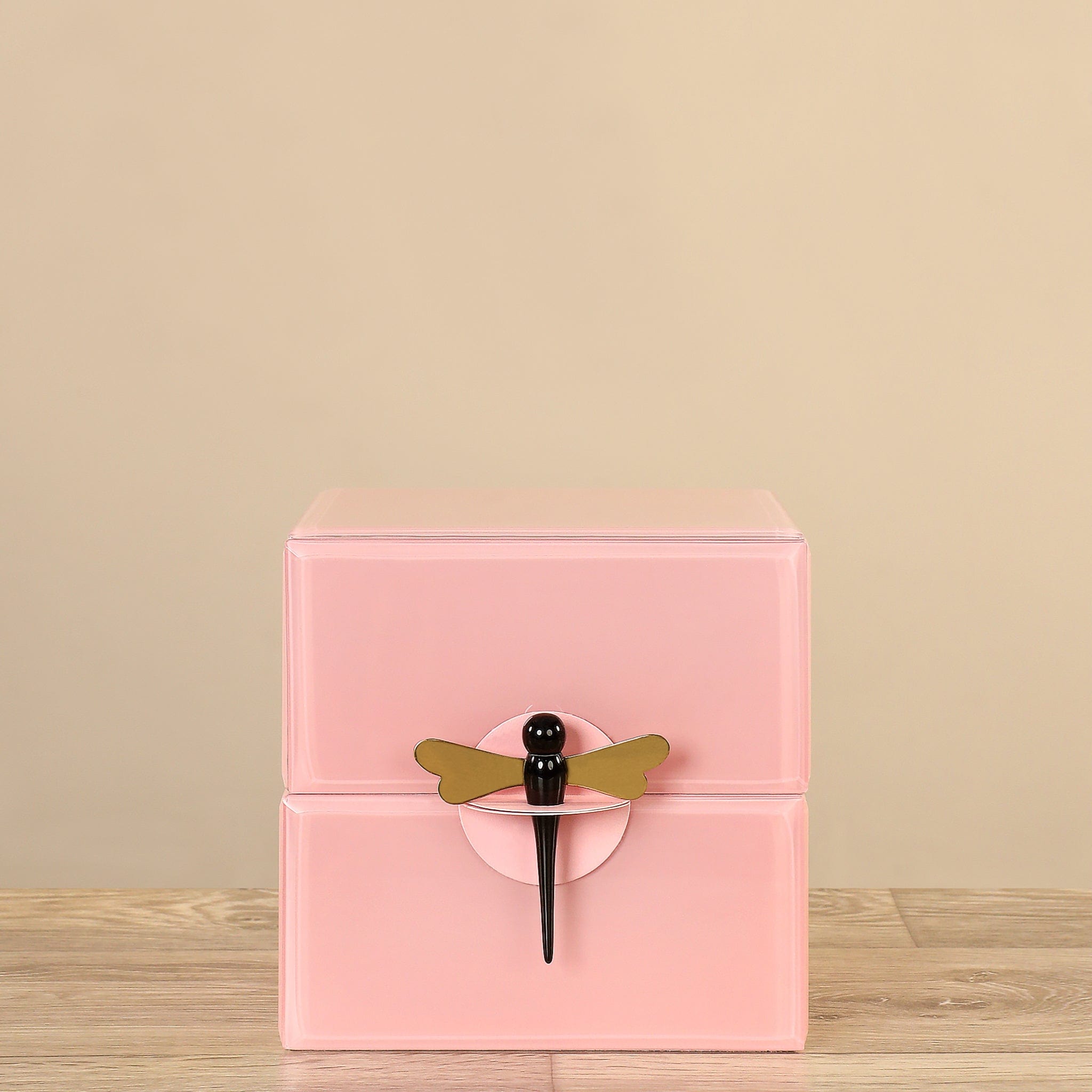 Pink Glass Box With Dragonfly