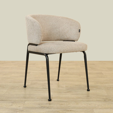 The Alder Dining Chair combines sleek plywood craftsmanship with soft fabric upholstery and a sturdy metal base, offering both comfort and durability.