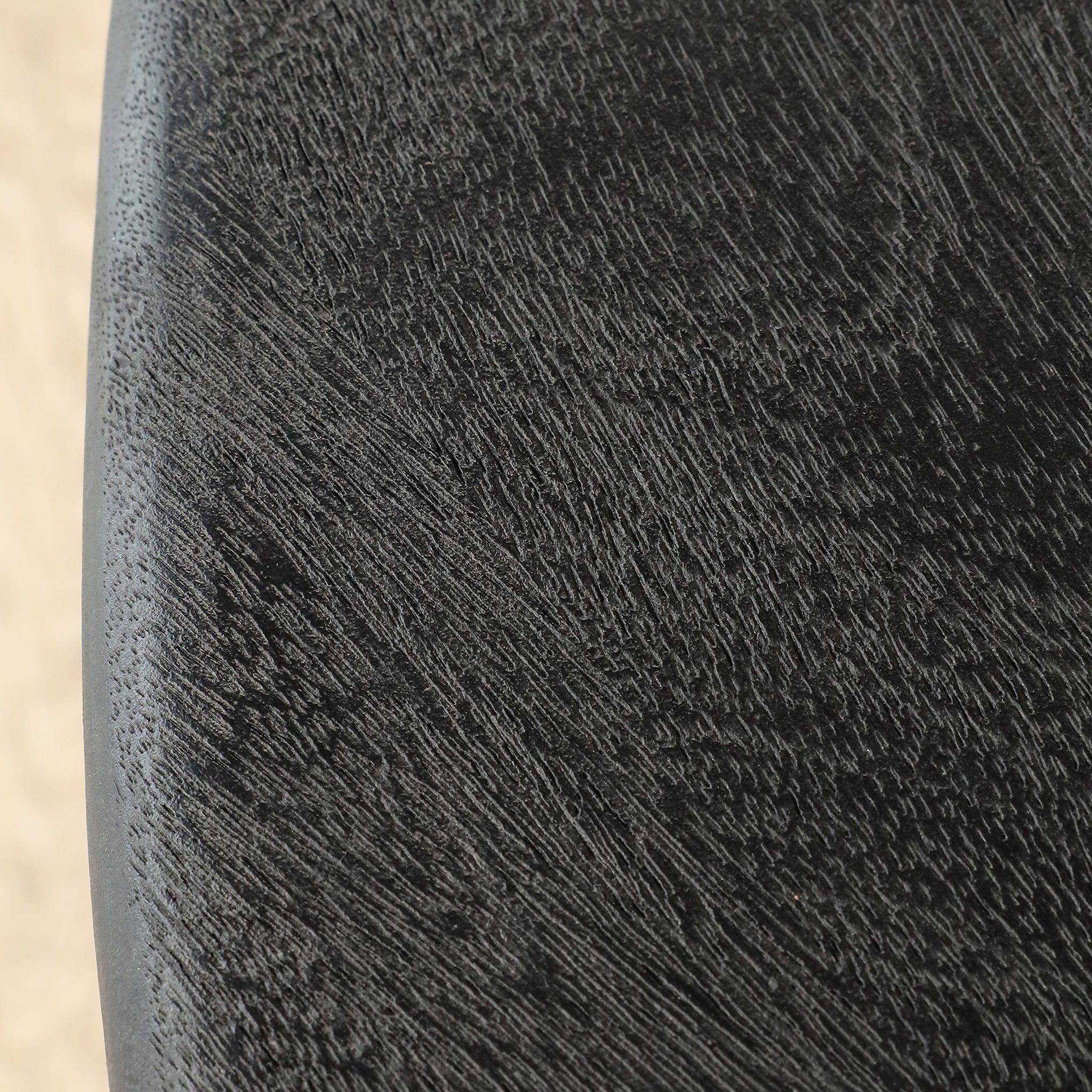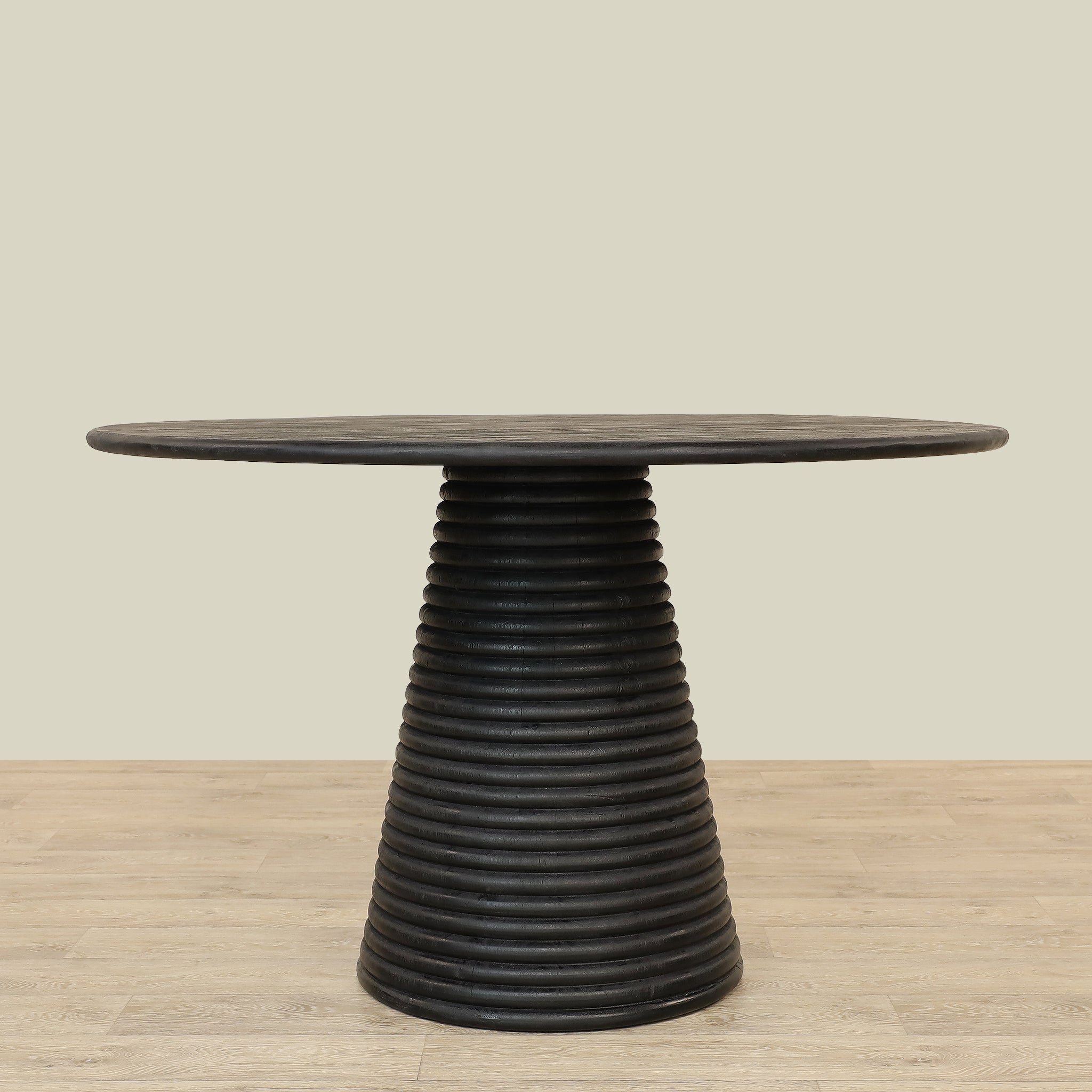 Indulge in luxury with our elegant wood and ratan dining table, adorned in sleek black.