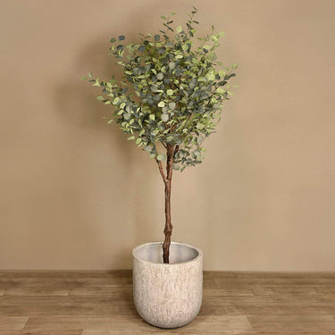 A symbol of focus and clarity, this artificial eucalyptus tree will help your interiors feel more centered. Its pale green leaves beautifully complement any decor. No assembly required – simply bend out the branches, place in a contemporary pot, and decorate your home.