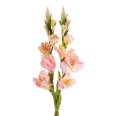This authentically detailed stem of Gladiola appears to be so living that must be touched to be distinguished from nature's own. Its large flowers with ruffled petals that climb up each create the perfect decoration for a special interior.