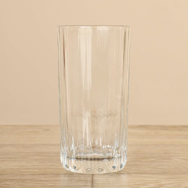 This faceted glass tumbler has the perfect amount of heft to fit nicely in the hand. Its elegant design and sparkling glass make this an easy piece to coordinate with other designs, colors, and styles to create just the right atmosphere for entertaining and meals.