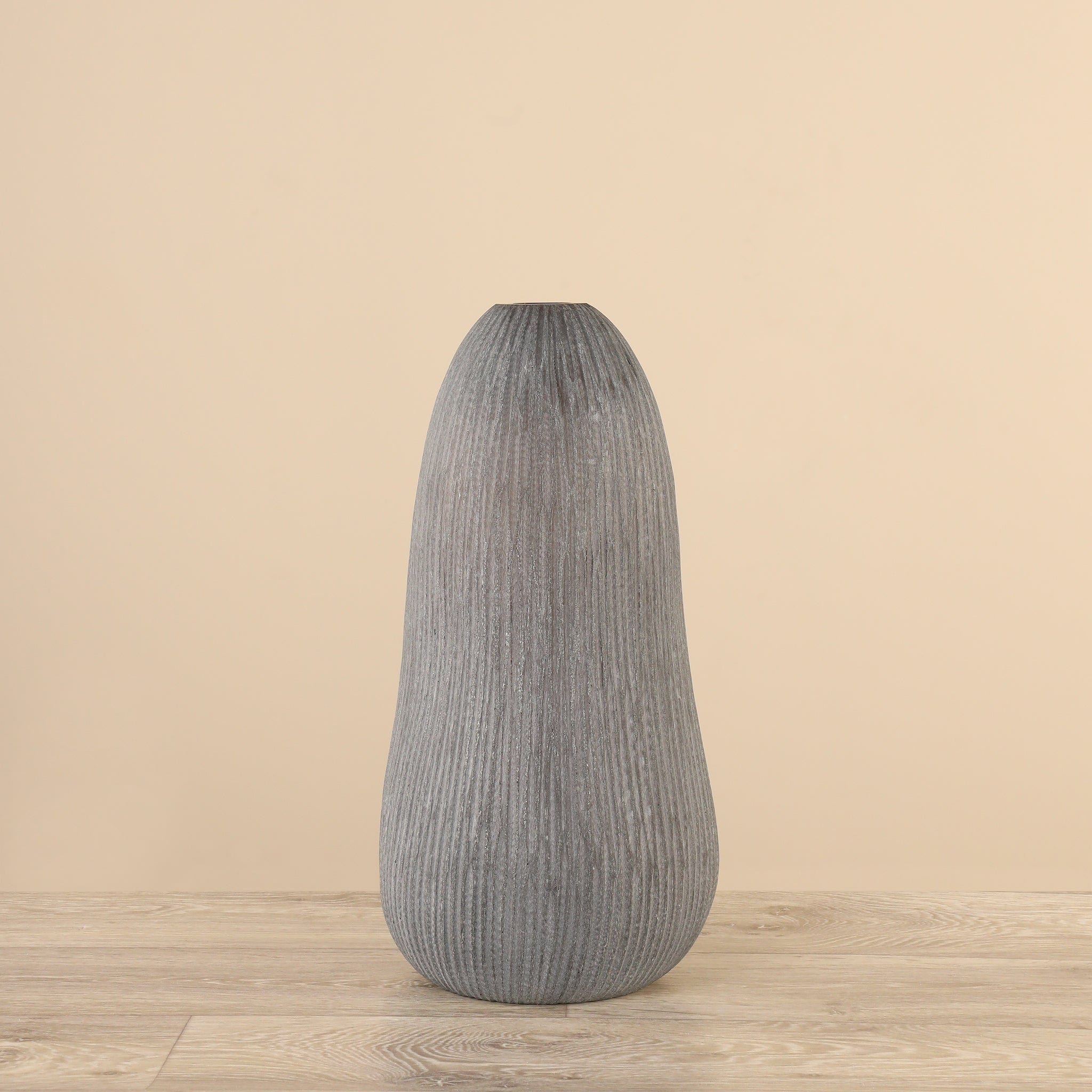 Add a contemporary element to your interior aesthetic with a minimalist decorative vase. This vase is crafted in glass and finished in versatile smoke grey to pair with many decorating schemes, patterns, and colors.