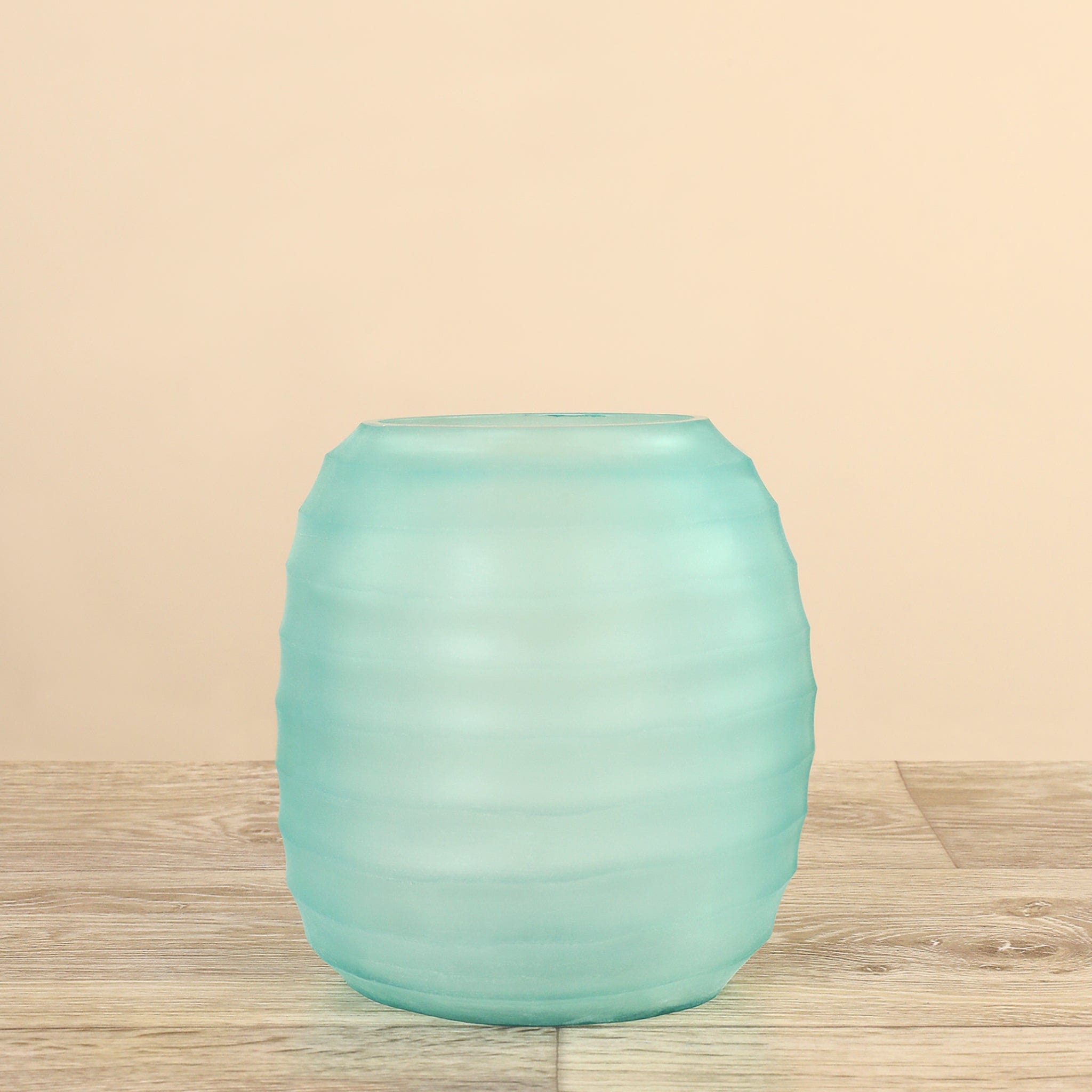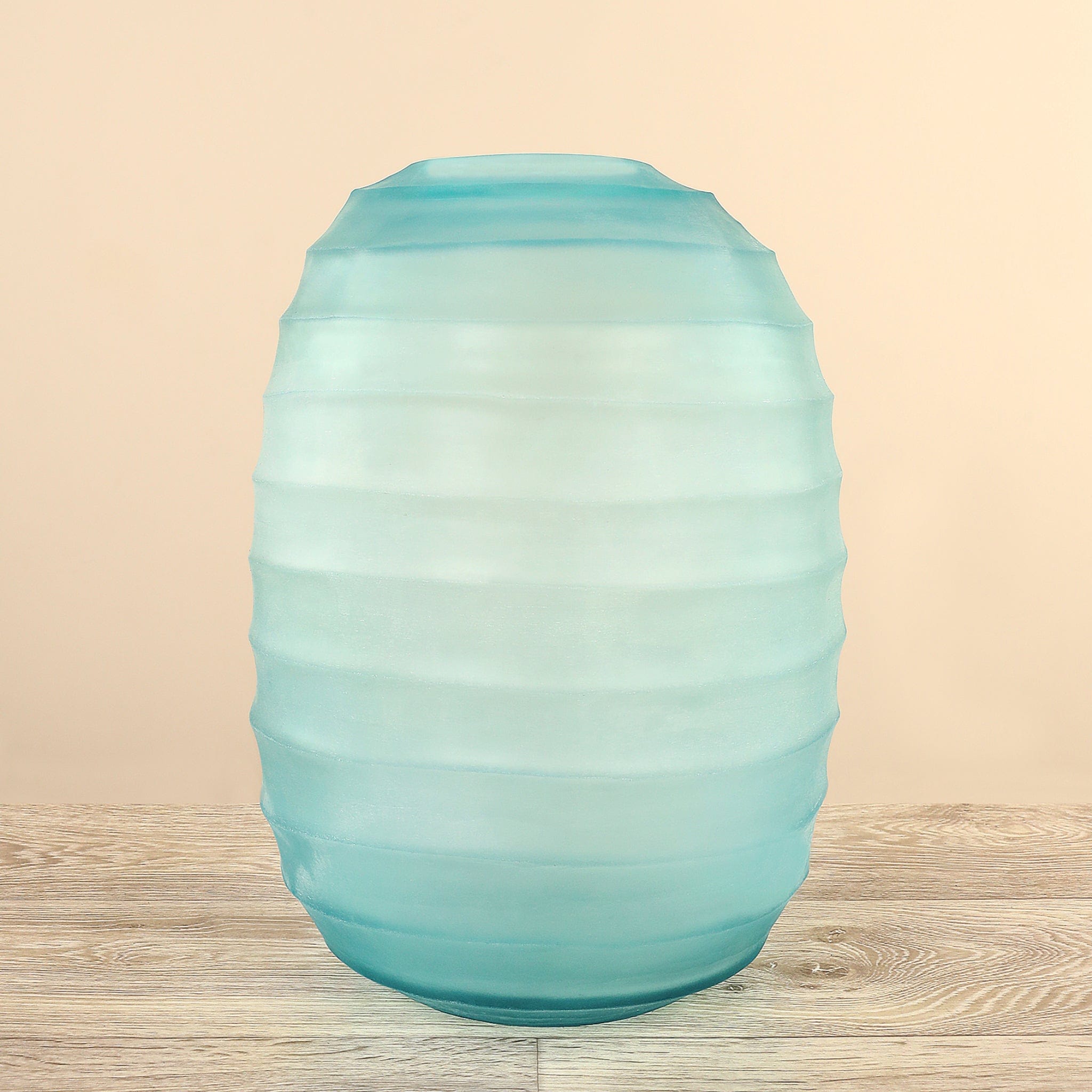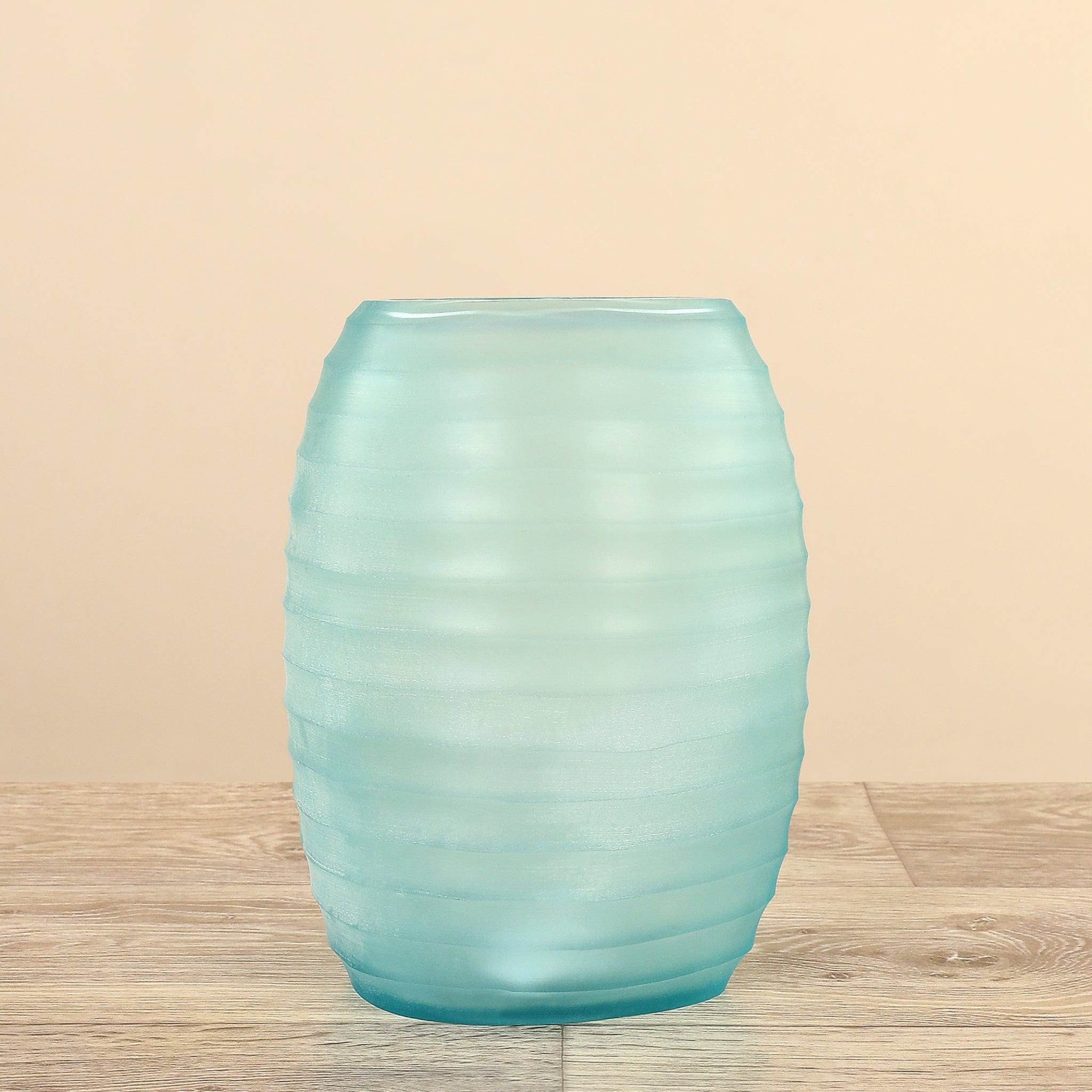 Beautiful as a decorative object this Handblown Glass Vase is equally stunning displaying artificial or real flowers. Crafted with a captivating green finish with horizontal ribbing, this elegant glass vase is a wonderful way to bring color and texture into a decorating aesthetic.