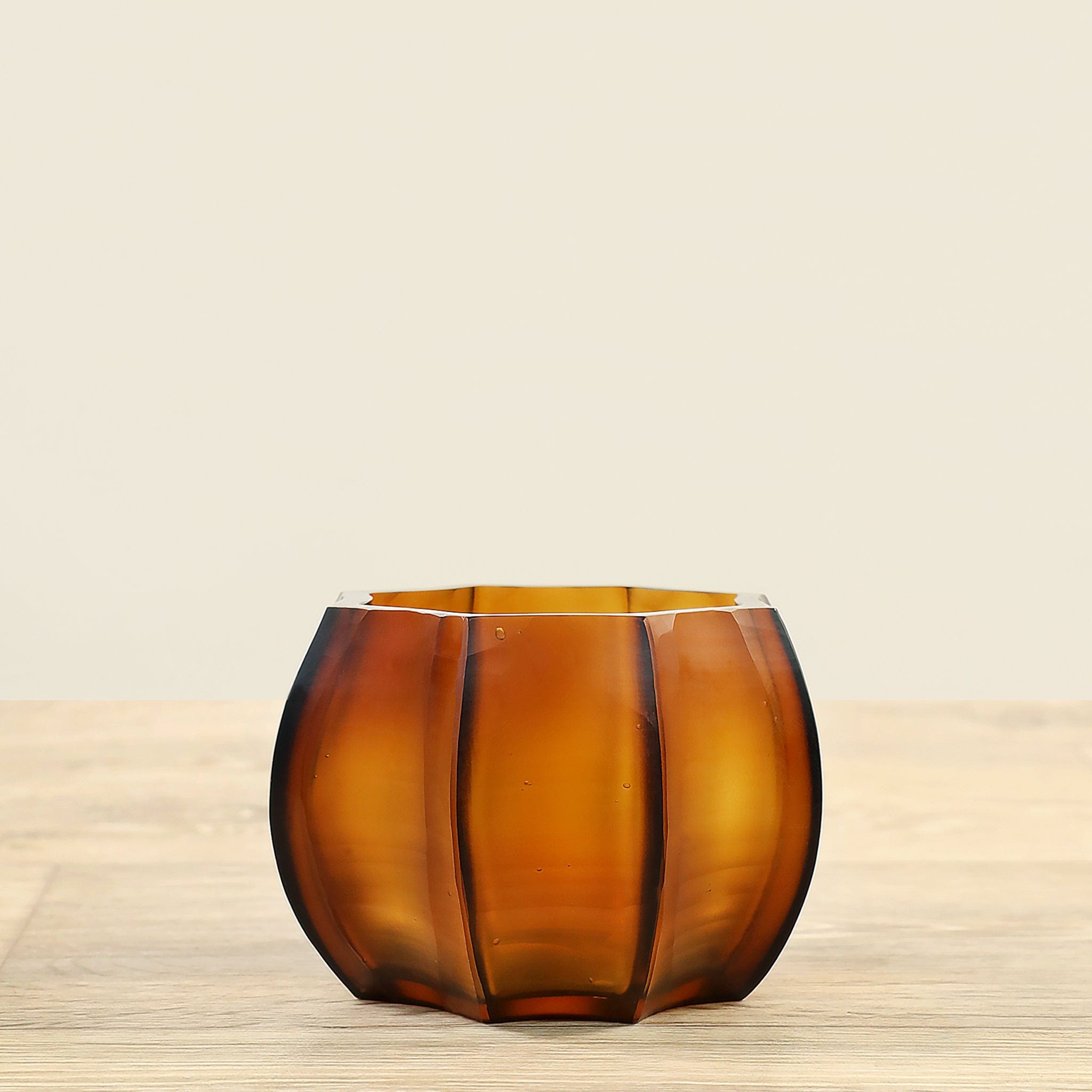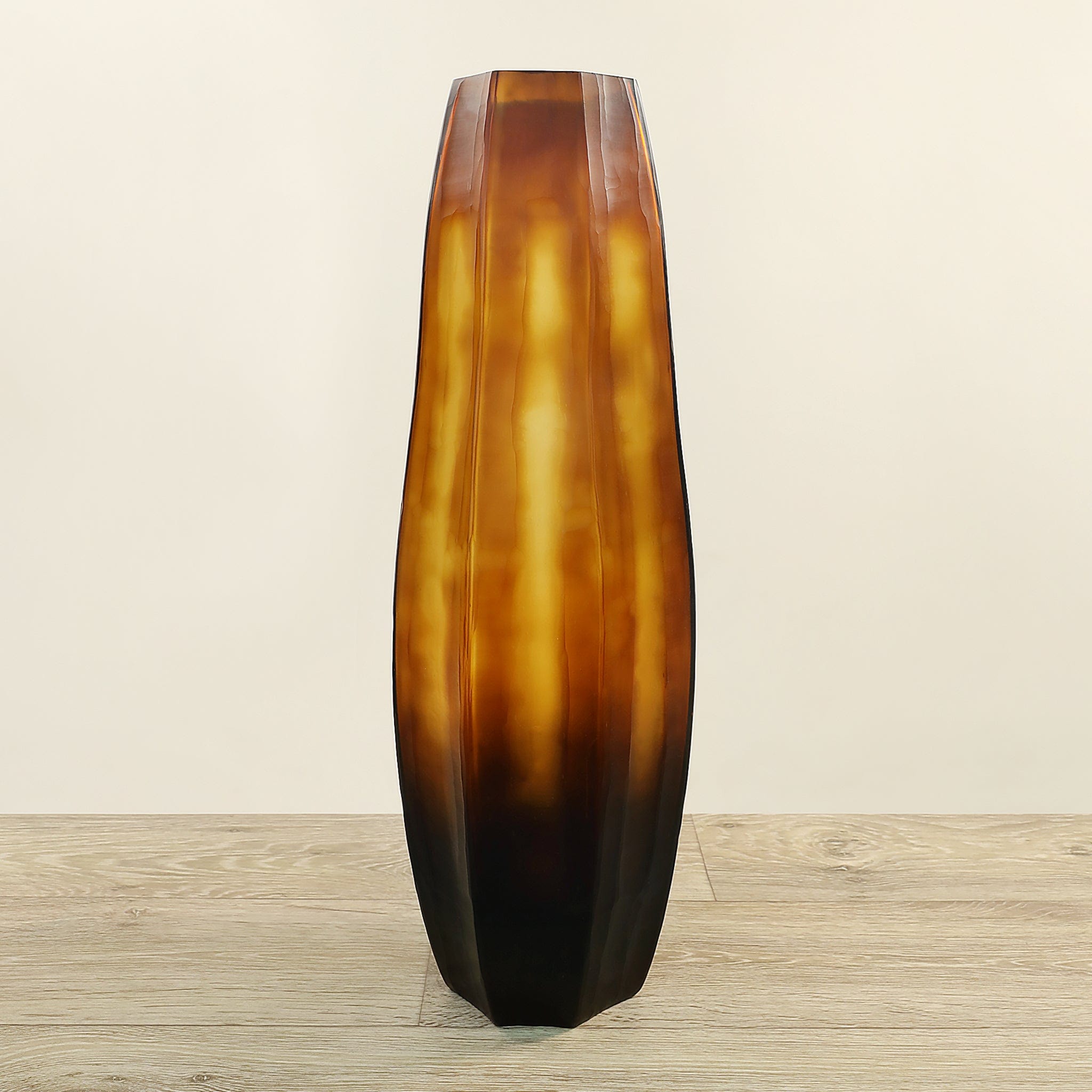 Rugged and contemporary this Handblown Glass Vase is a natural for holding greenery, branches, or florals. The neutral amber finish is easy to pair with other colors while the handblown angular shape and style bring a modern perspective for a fresh outlook.