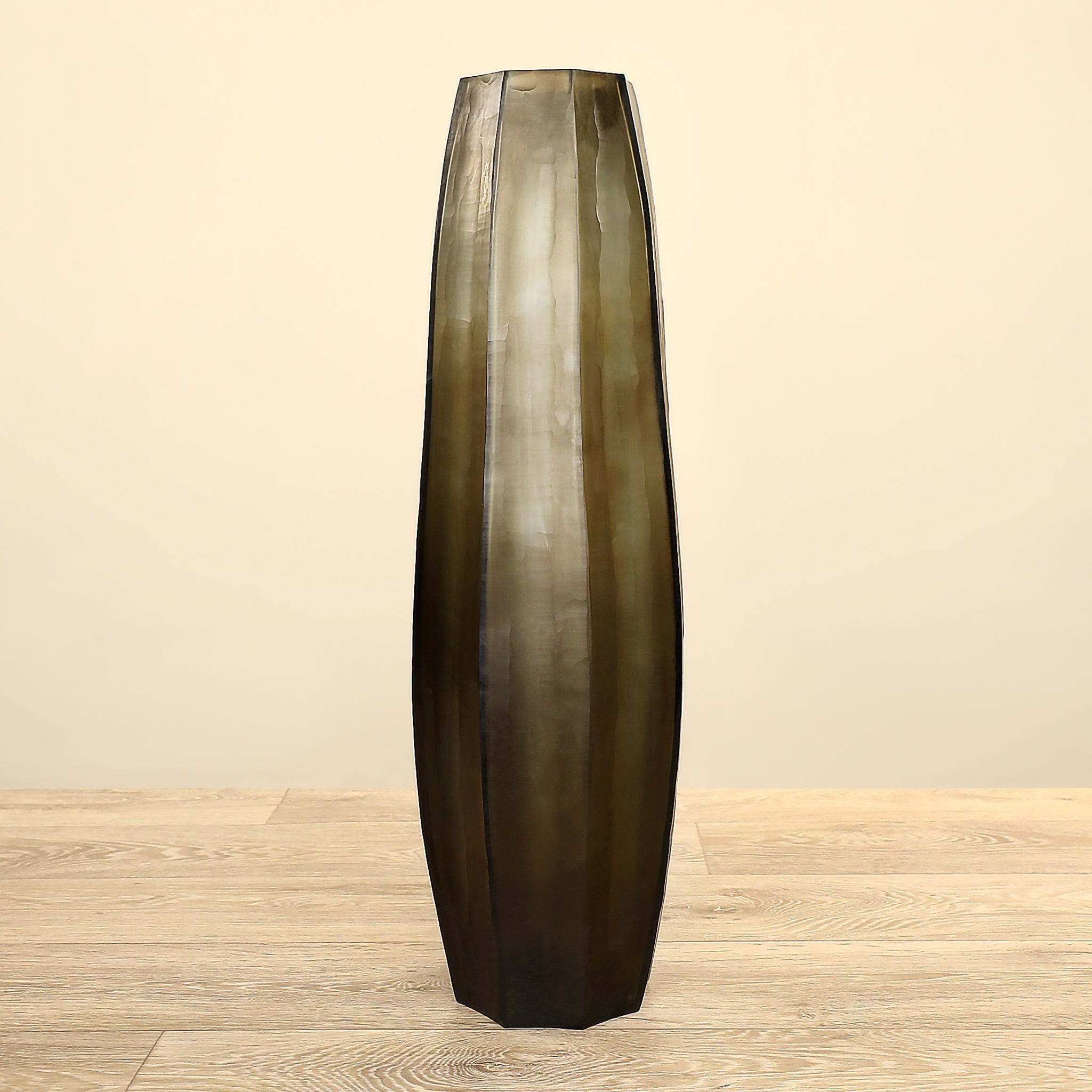 Rugged and contemporary this Handblown Glass Vase is a natural for holding greenery, branches, or florals. The modern opaque green finish is easy to pair with other colors while the handblown angular shape and style bring a modern perspective for a fresh outlook.