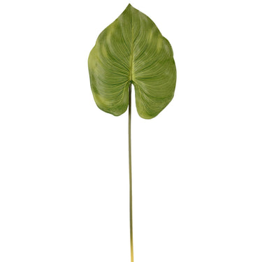 Add this large and glossy faux Canna Leaf to a tropical or subtropical arrangement. Lush, green, and beautifully shaped this elegant artificial leaf would be wonderful as a single stem in a minimalist vase or arranged together with brilliant blooms.