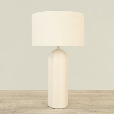 Elevate your living space with this sophisticated metal table lamp featuring a natural boucle shade.