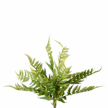 The instantly recognizable fern. Found all over the world in many climates, the fern was a popular favorite of the Victorian era. Crafted in exquisite detail our faux fern stem is hard to distinguish from the real thing. Add this vibrant and beautiful fern to an everyday display, wreath, or bouquet for a lush look.