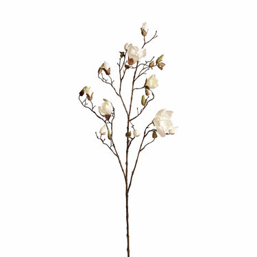 Distinguished by its glossy green leaves, the Magnolia has large petaled blooms perfect for a botanical accent in any interior. Pair this lovely artificial Magnolia Stem with other flowers and greenery or fill a vase with its extravagant blooms for a lush display. Beautifully crafted, this faux magnolia stem could also be added to a wreath or bouquet.
