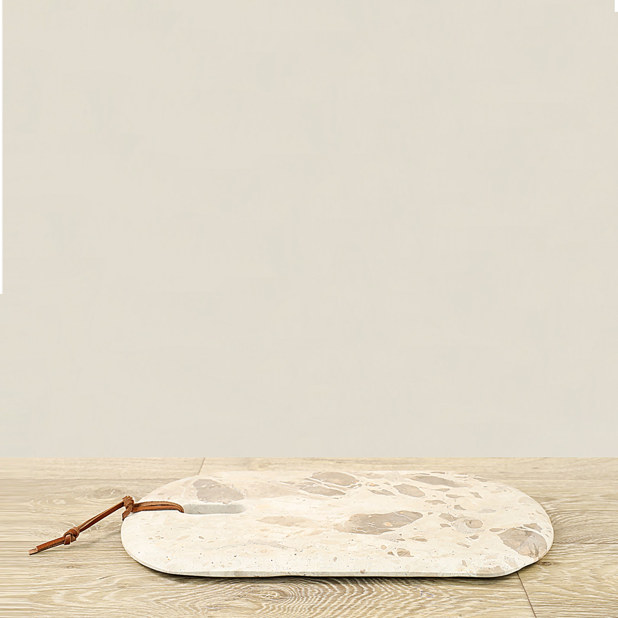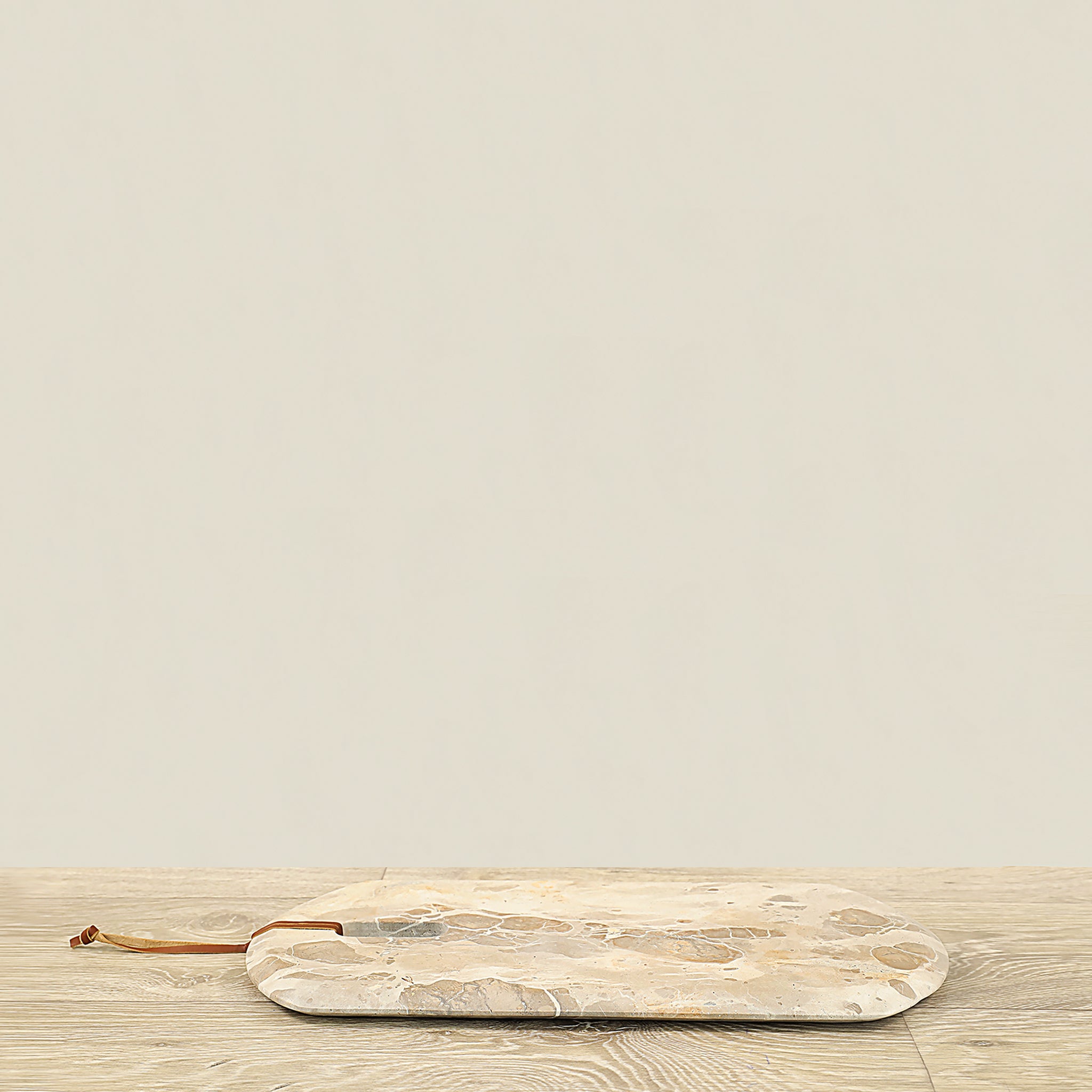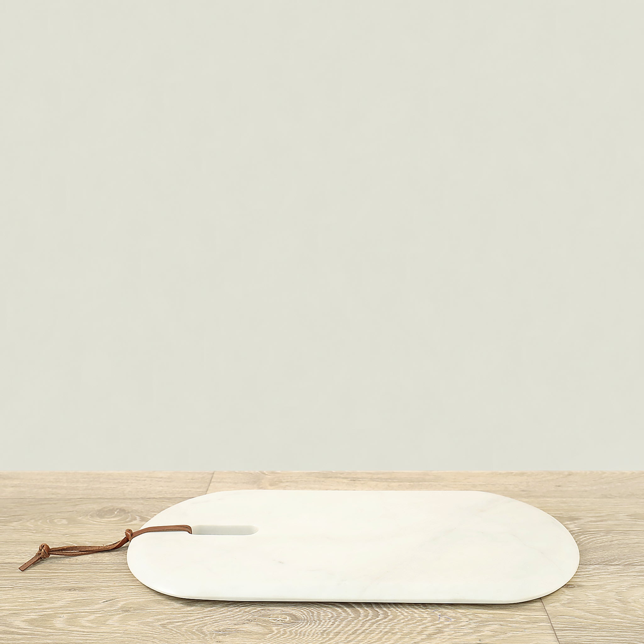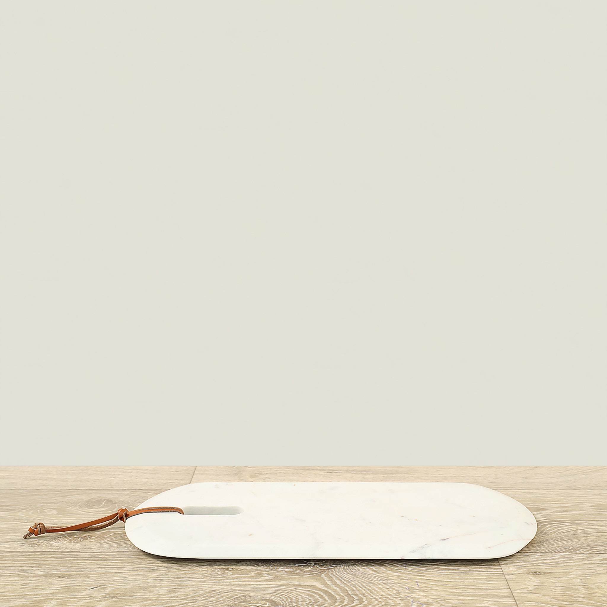 Enhance your dining experience and showcase your culinary creations with this sophisticated and practical addition to your tableware collection. Crafted in solid marble this Oval Board is ideal for serving or display. It has a comfortable and convenient handle with a leather strap for the perfect finishing detail.