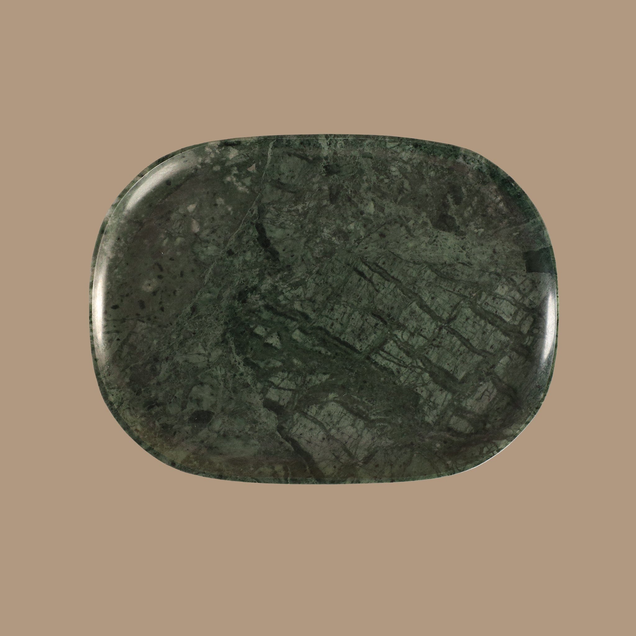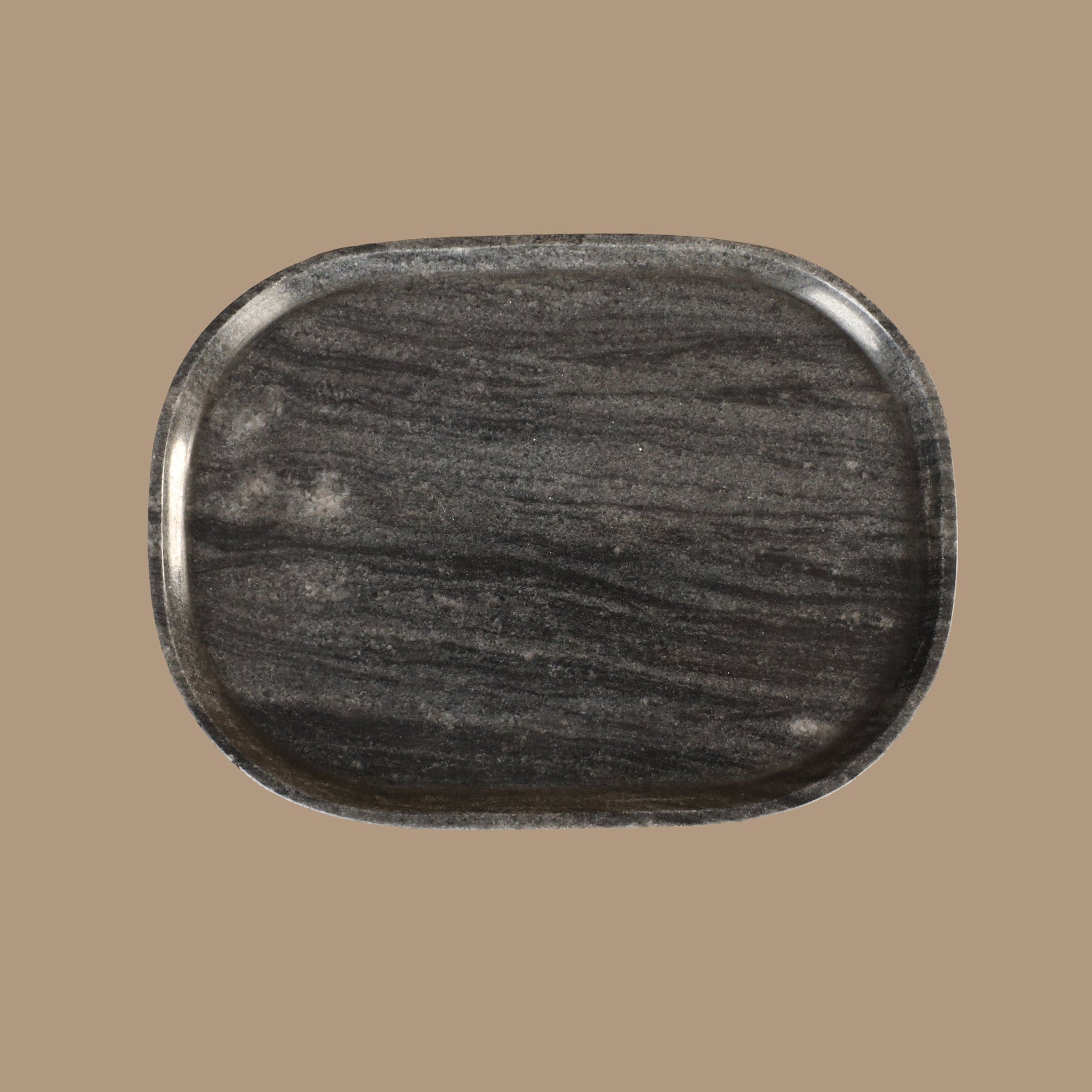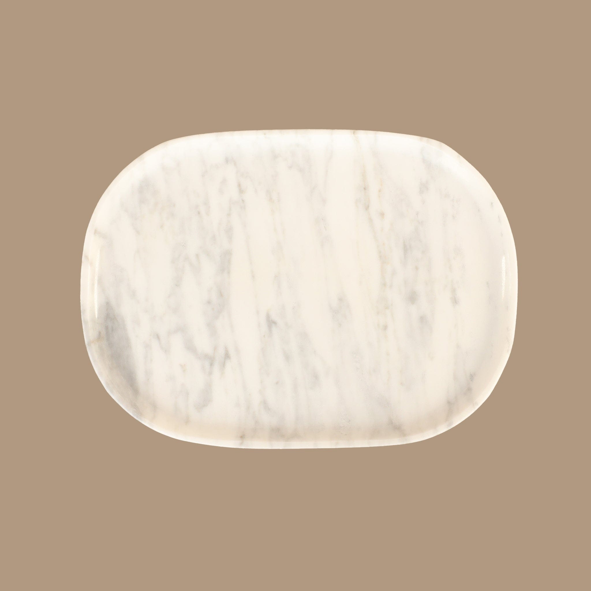 Serve delicious appetizers or desserts on this sleek Marble Tray. The beautifully veined oval marble is unadorned for an elegant look. This lovely elongated tray has a raised edge making it perfect for holding floral arrangements, bath accessories, and many other items to showcase their beauty and elevate your style.