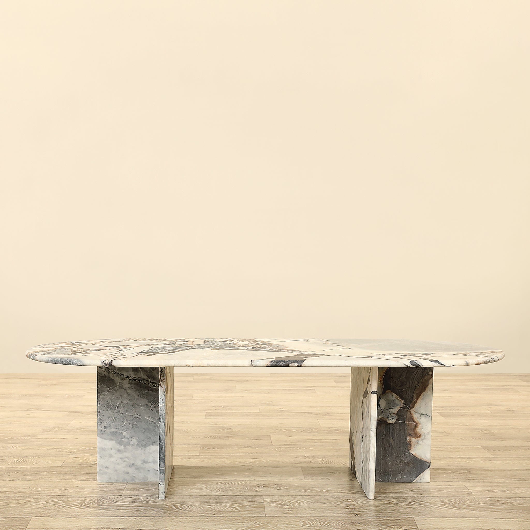 Exquisitely sophisticated in its design, the Cervo Coffee Table effortlessly exudes an air of continuous motion that will transform your decor into a realm of elegance. Cervo ingeniously reimagines the traditional pedestal base by introducing two open corners that elevate an oval marble top, seamlessly enhancing any interior space.