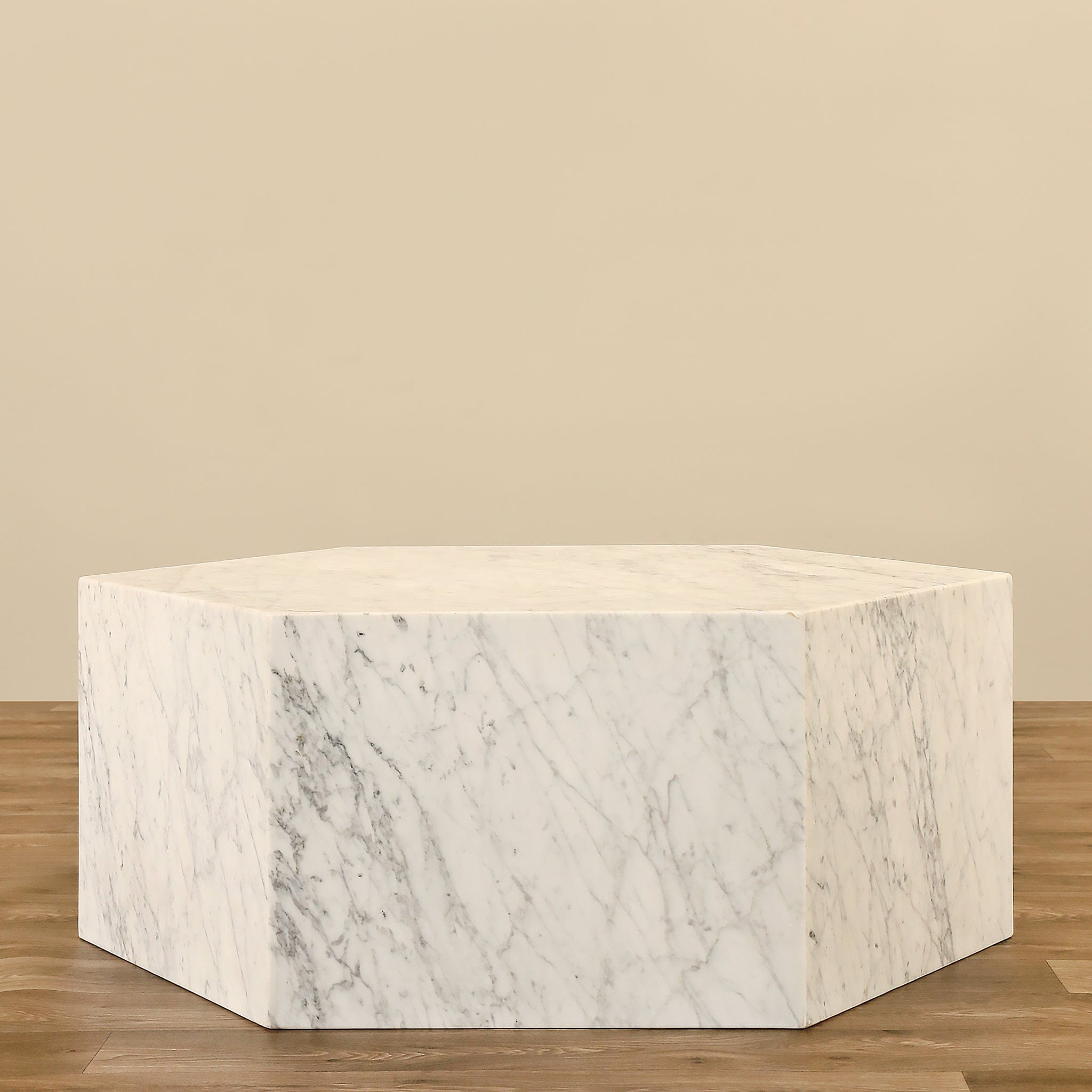 The simple silhouette of the Cetona Coffee Table has a bold architectural style ideal for a living space. Its dynamic shape is crafted in natural marble to play with expectations and creates a space for entertaining, conversation, and relaxing.