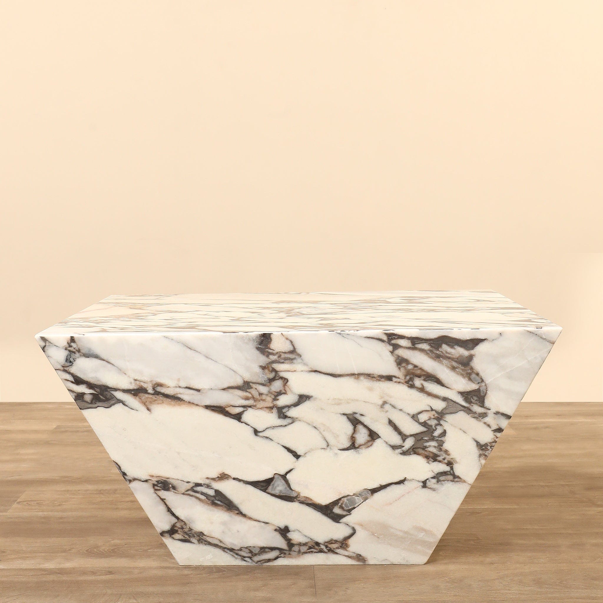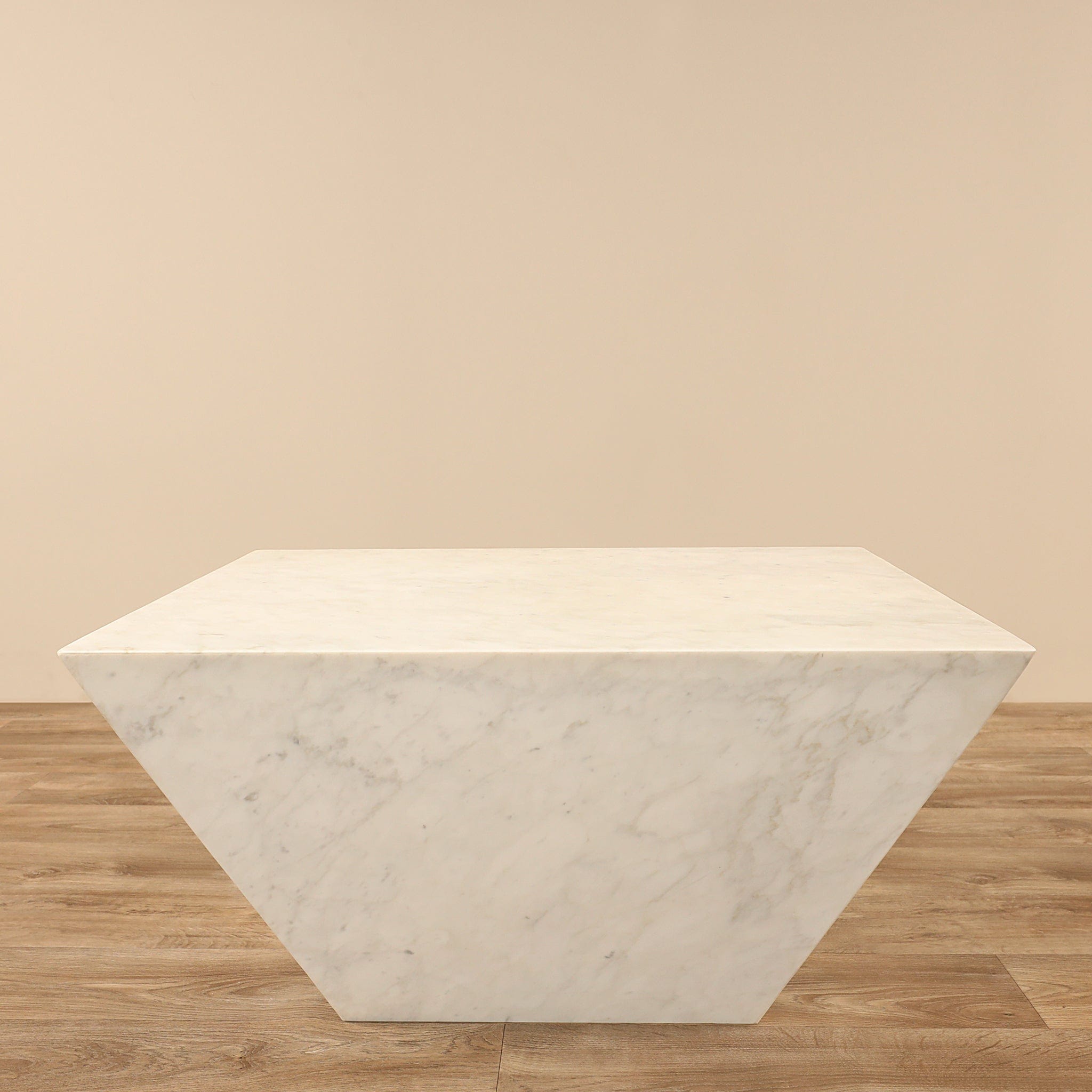 An icon in the making the Clara coffee table is designed in sleek marble. The tapered base floats a wide top for a spacious and expansive look. The beautiful natural marble of this piece will make a statement in any living room.