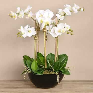Elevate your space with the timeless beauty of our artificial Orchid Arrangement. Each intricately detailed orchid bloom and lush foliage replicates the natural charm of real orchids. Nestled within a sleek contemporary planter this artificial orchid is a low-maintenance yet high-impact addition to your decor.