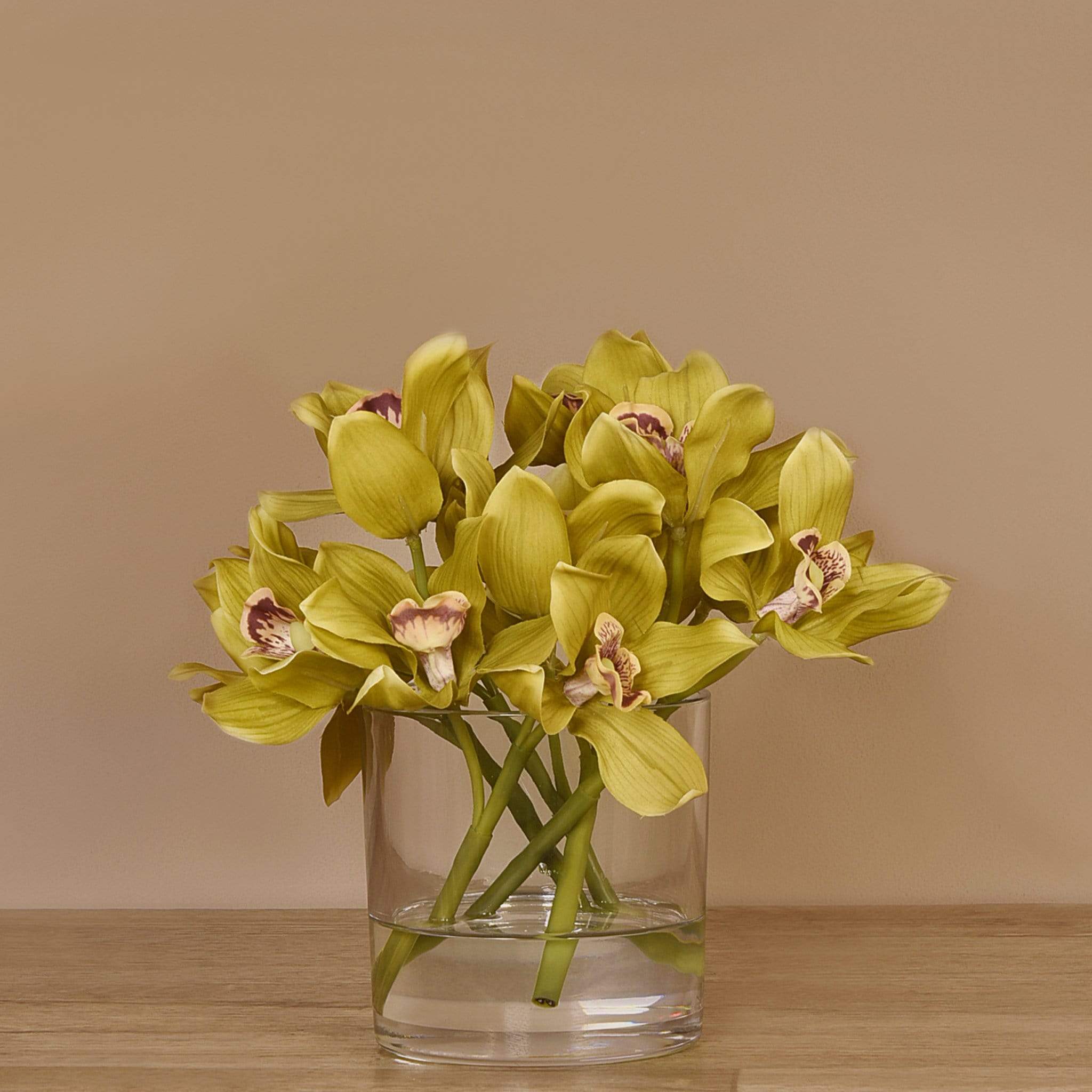 A symbol of pure friendship, this is the perfect centerpiece for a dinner with loved ones. These pretty artificial cymbidiums look remarkably similar to the real thing.