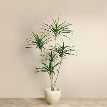 Give your home a dose of desert style. This artificial yucca plant looks and feels surprisingly real, from its textured trunk to its spiky green leaves. Place it in a concrete pot to complete the look.