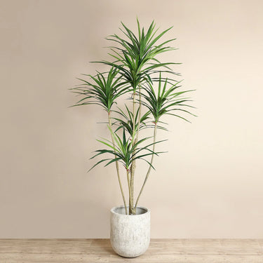 Give your home a dose of desert style. This artificial yucca plant looks and feels surprisingly real, from its textured trunk to its spiky green leaves. Place it in a concrete pot to complete the look.