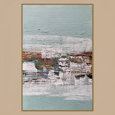 Whether displayed in an urban loft or a minimalist interior, this abstract painting with its nuanced colors, use of texture, and beautiful composition is bound to be a focal point, sparking contemplation and appreciation for its artful sophistication. Perfect for a living space, dining room, or entryway.