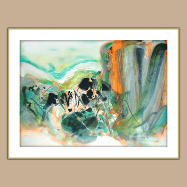 Elevate your aesthtic with this contemporary work of art that draws attention with its modern design full of movement and nuance, effortlessly blending muted colors. This artwork is a captivating surface evoking a sense of depth within the expressive color palette.