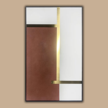 Tradition and modernity converge in this painting to captivate the senses. The canvas serves as a symphony of textures, with a backdrop of earthy tones of brown and neutrals for a nuanced foundation. The infusion of gold 3D S.S. pieces adds a layer of polish, infusing the composition with a radiant warmth for use in many decorating styles.