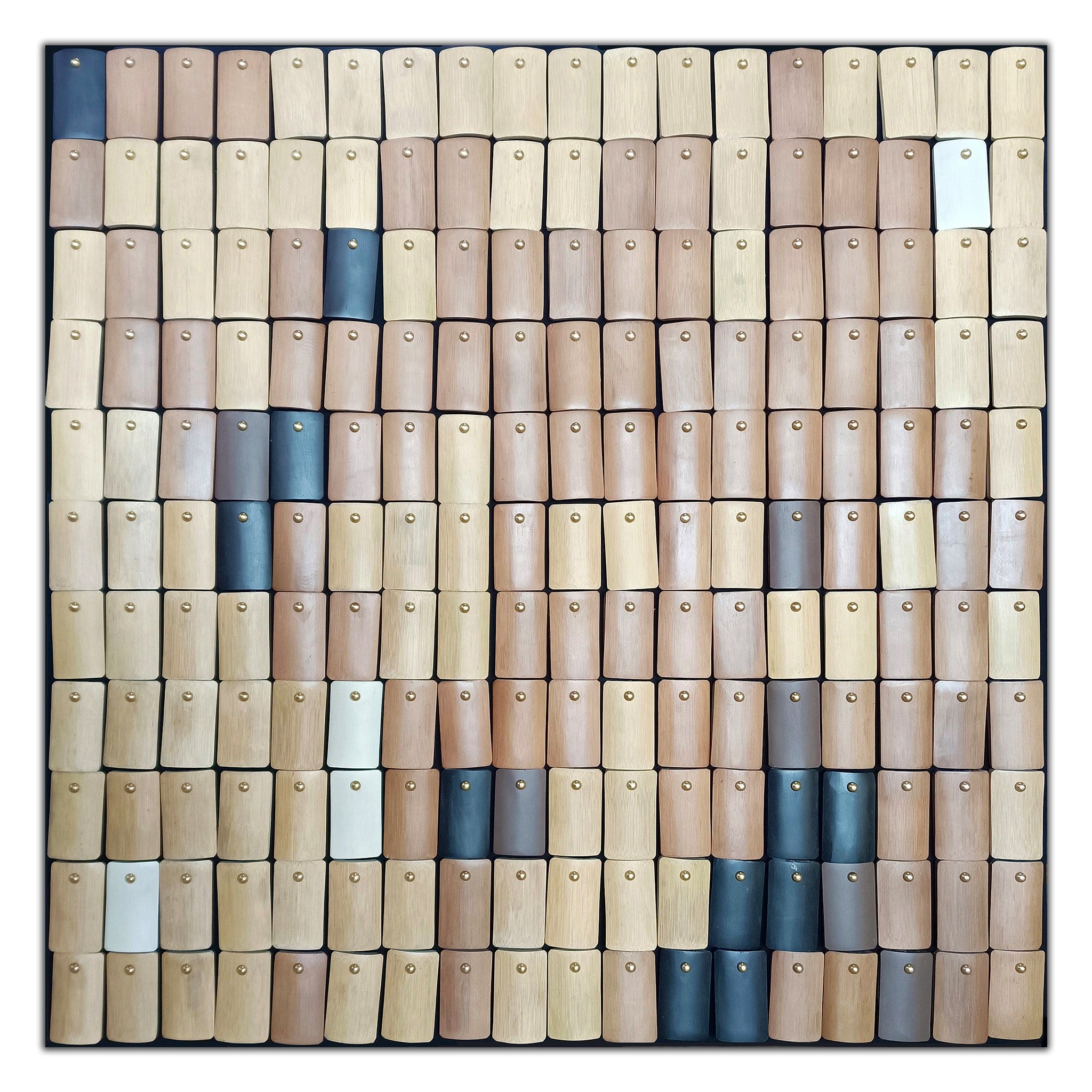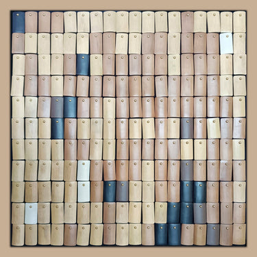 Enhance your aesthetic with this frameless work of art. The composition is alive with bamboo chip modeling, paint, metal gadgets, and brass to create a dynamic visual resulting in a contemporary artwork that captivates with its depth and composition.