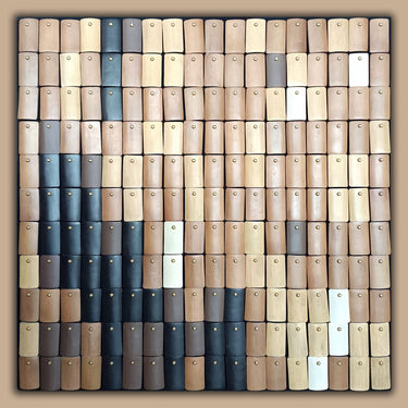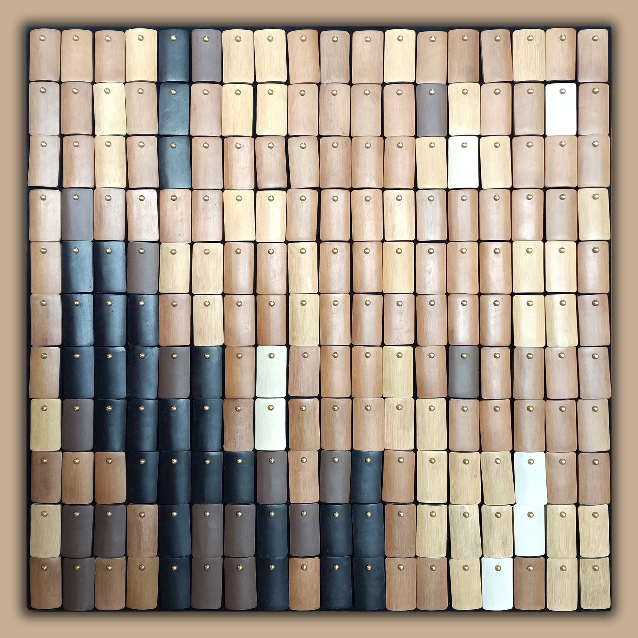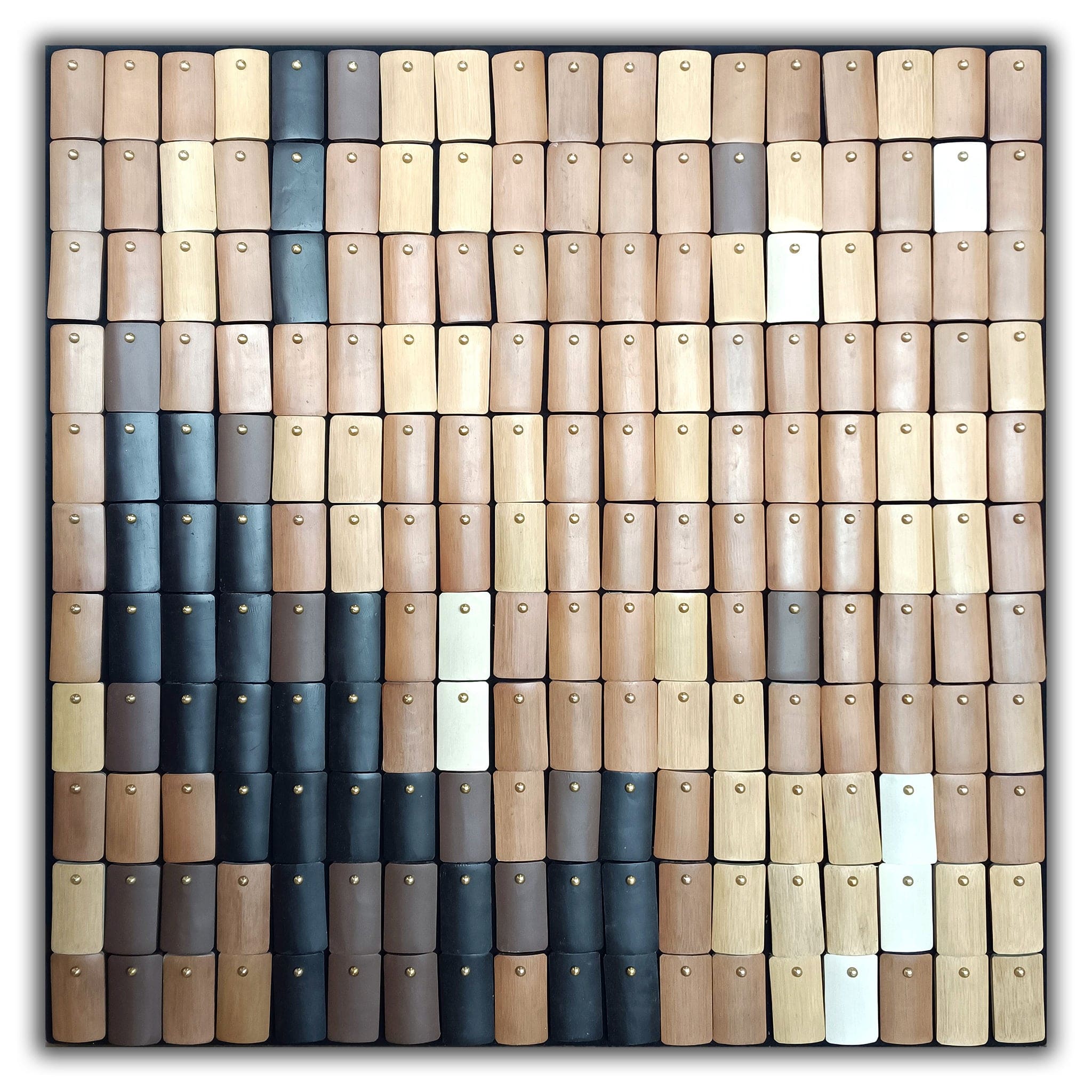 Enhance your aesthetic with this frameless work of art. The composition is alive with bamboo chip modeling, paint, metal gadgets, and brass to create a dynamic visual resulting in a contemporary artwork that captivates with its depth and composition.