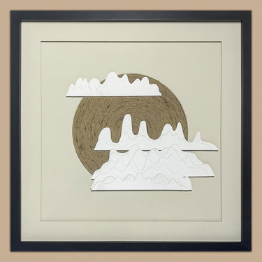 Transform a bare wall with this contemporary painting. Its graphic design utilizes wood and cardboard modeling effortlessly complements various decor styles. Elegantly framed in black, this sophisticated artwork offers a simple yet impactful way to rejuvenate a space.