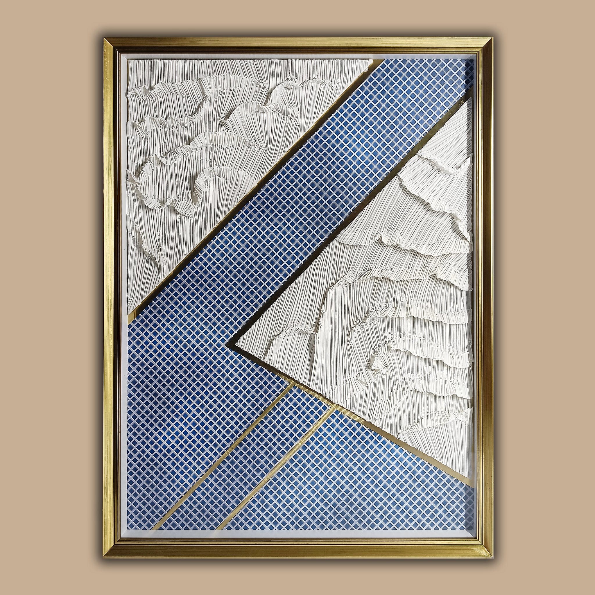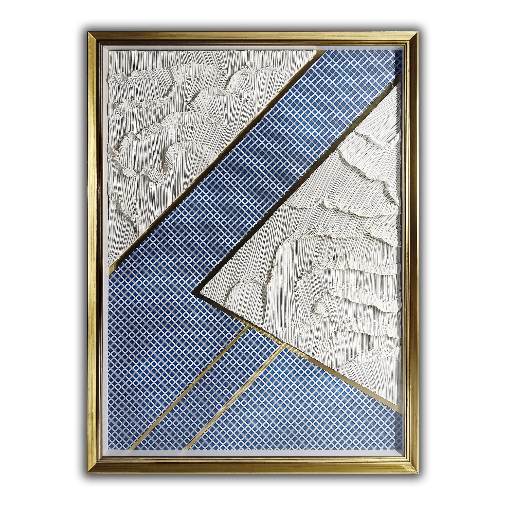 Transform a bare wall with this abstract painting. Its contemporary design utilizes 3D texture printing, golden stainless steel cutting, and acrylic to complement various decor styles effortlessly. Framed in lustrous gold for impact, this sophisticated artwork offers a simple yet distinctive way to rejuvenate a space.