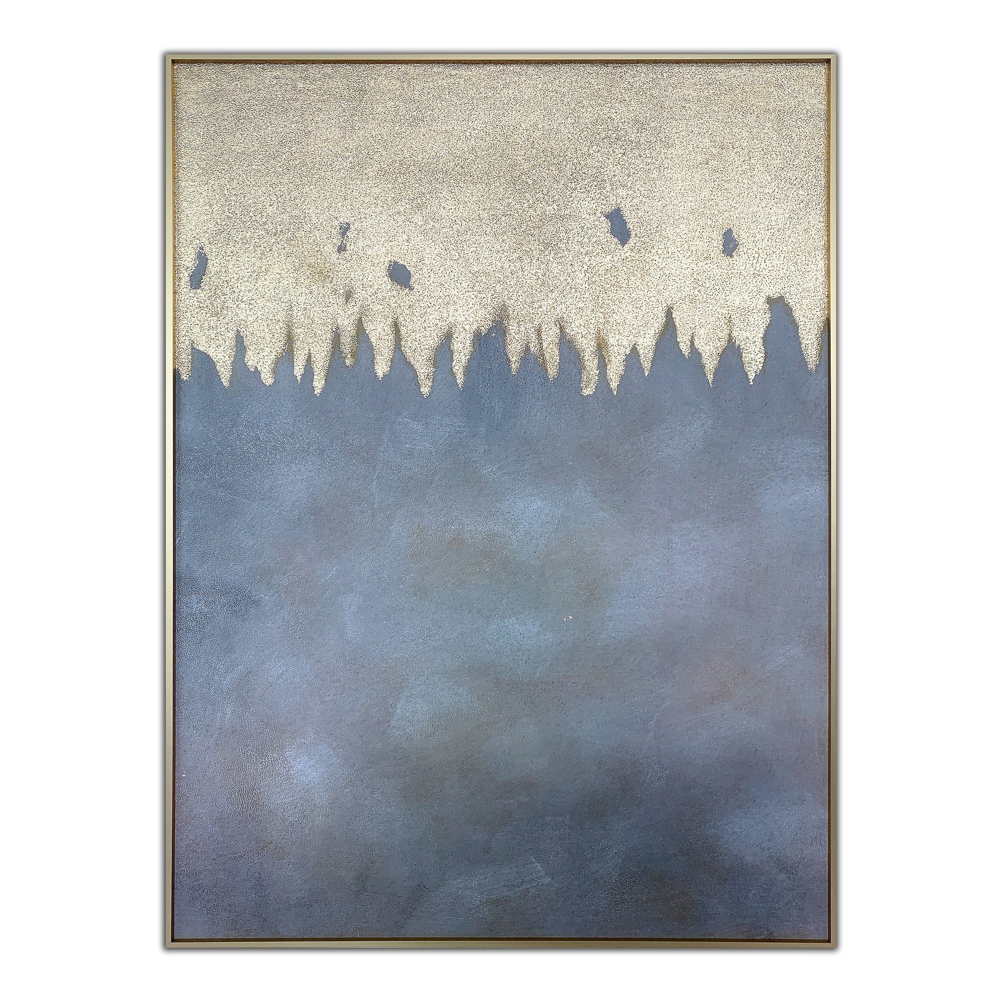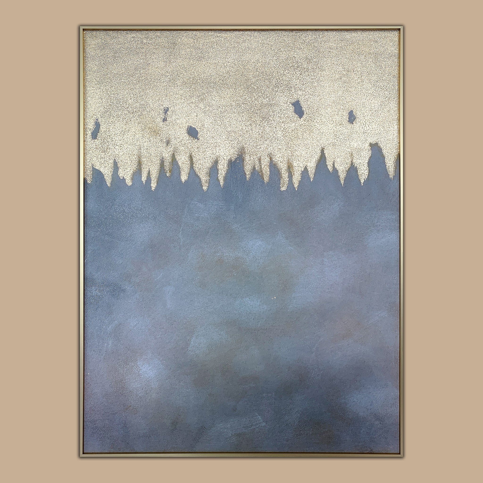 Painted with oil, this abstract artwork is encased in a sleek champagne frame, providing a sophisticated contrast to the neutral tones within the composition. This beautifully crafted handmade oil painting prominently showcases the contemporary flair and skillful use of form and shape, making it an ideal addition to various decorating styles.