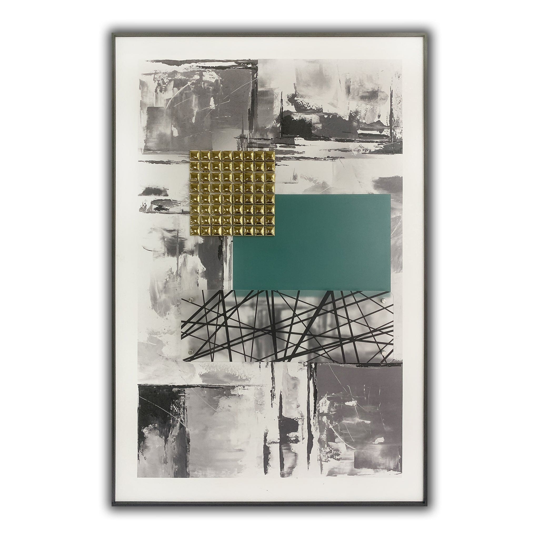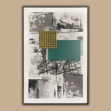 This painting seamlessly blends mediums to create a dynamic visual narrative that expands traditional boundaries. The mix of textures, materials, and colors creates a unified yet striking composition, offering a contemporary and thought-provoking addition to any space.