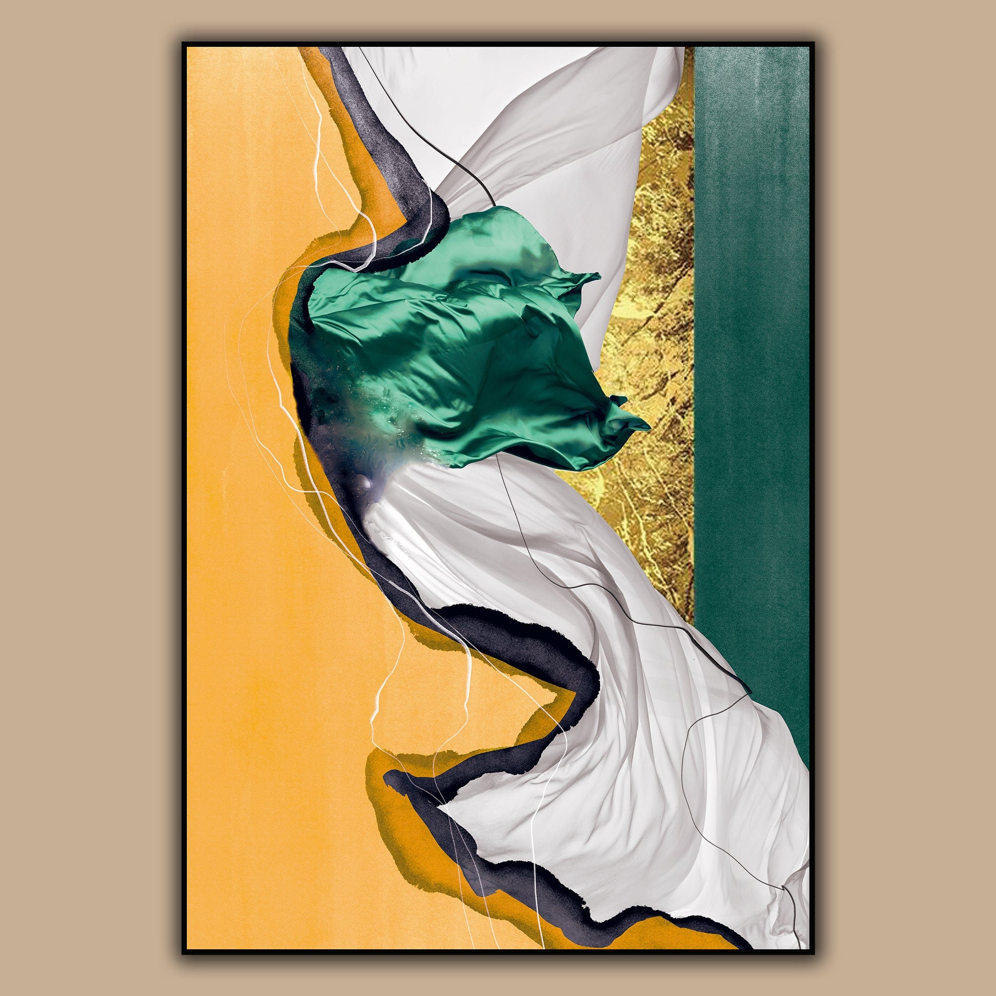 Vibrant and dynamic, this UV print bursts with vivid yellow and emerald green, commanding attention with its presence. The contemporary flair is accentuated by a sleek black frame, providing a definitive look that will complement modern decorating styles.