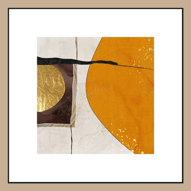 The bold shapes and the strong colors embrace the modern story of this contemporary art piece. The flair of natural elements combined with modern shapes makes this a great addition to any room. The circle and square combination make this a statement piece.