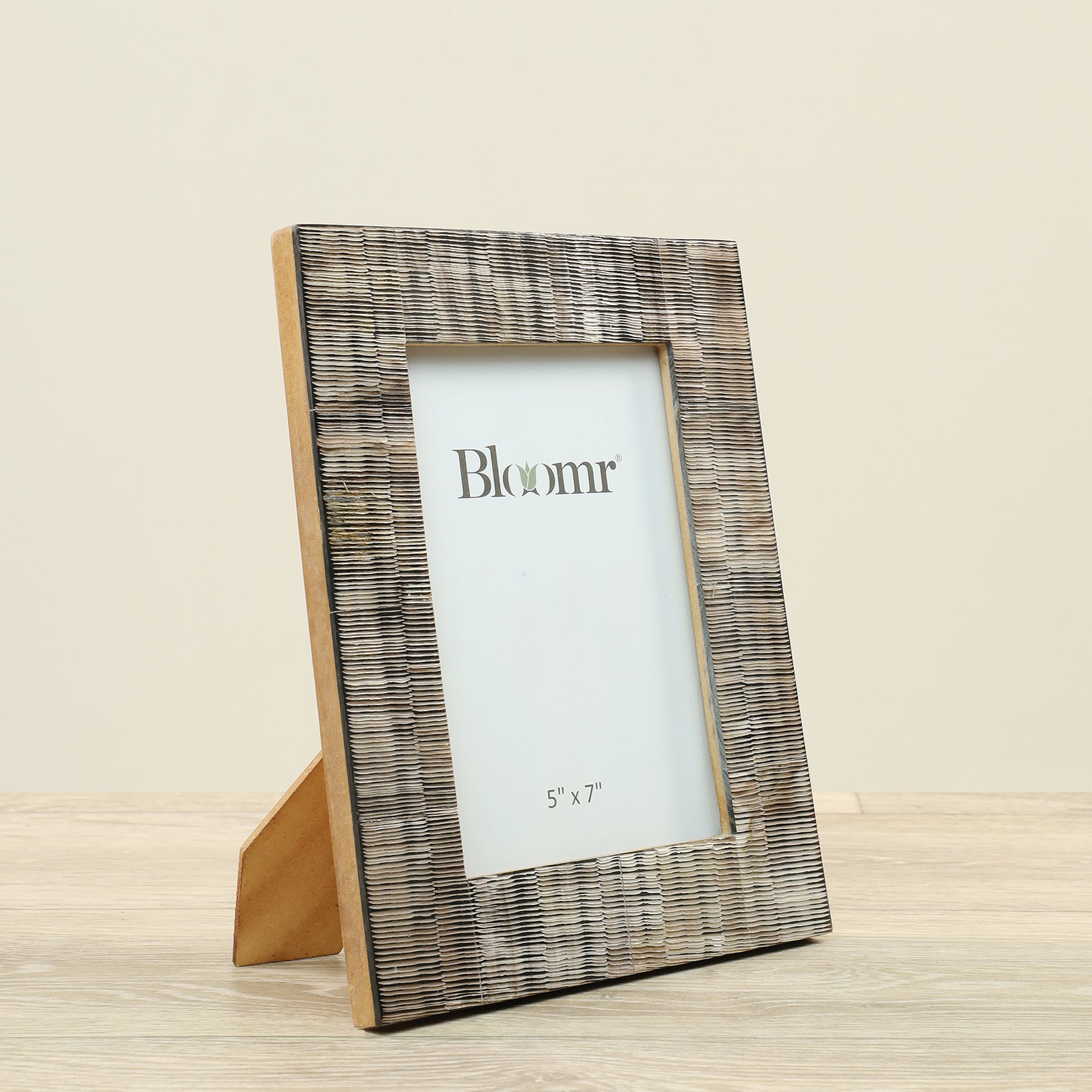 Elevate the presentation of your cherished photos with this versatile frame. It seamlessly complements many decorating styles while providing a stunning backdrop for your photographs. Boasting an etched horn design, this photo frame ensures a perfect showcase for your favorite memories, adding an elegant touch to any space.