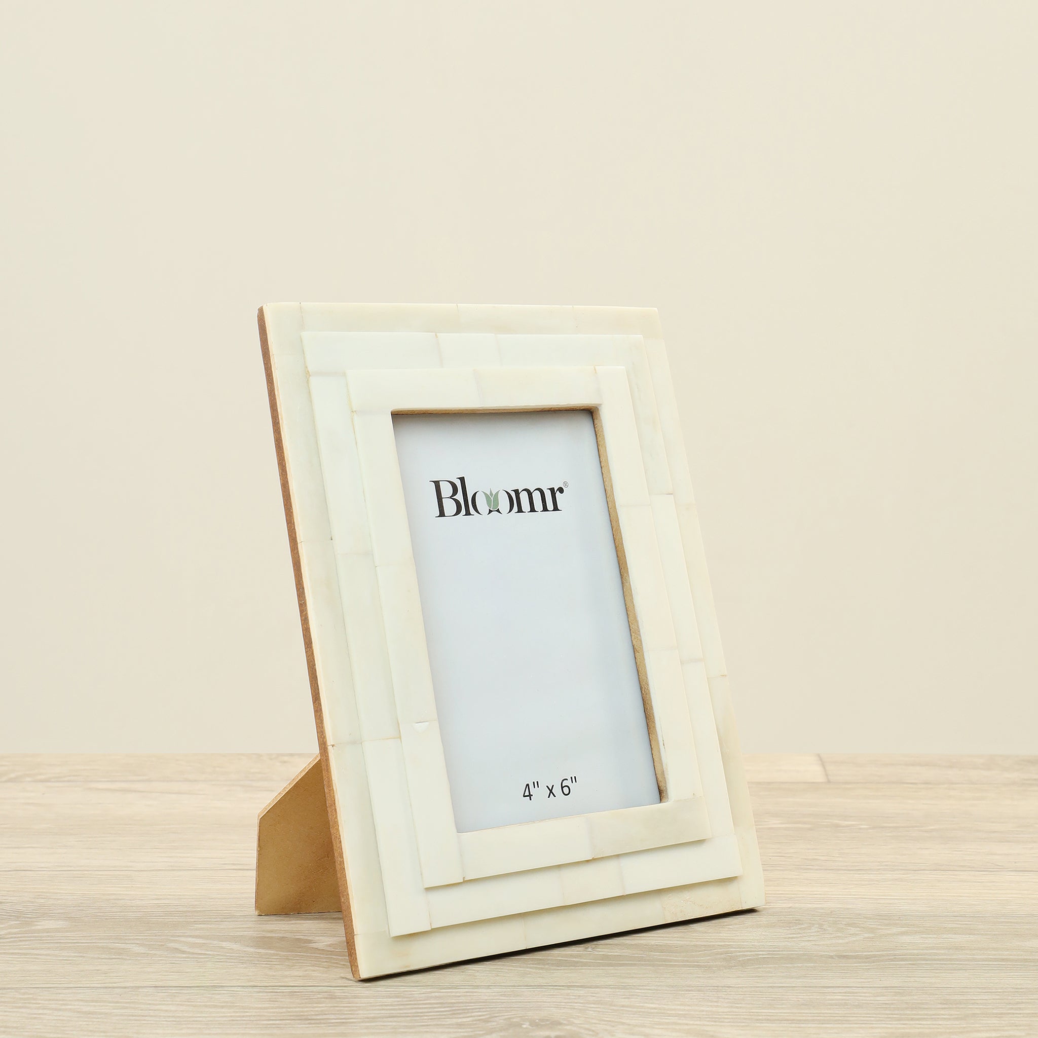 Elevate the presentation of your cherished photos with this versatile frame. Designed in bone white, it seamlessly complements any decorating style while providing a stunning backdrop for your photographs. Boasting a tiered design, this photo frame ensures a perfect showcase for your favorite memories, adding an elegant touch to any space.