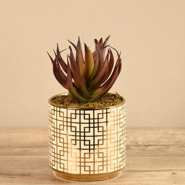 Introduce natural beauty to your decor with none of the mess with our elegant potted Aloe Plant. From the lush spiky leaves to the modern container, this lovely faux aloe plant is an effortless way to add a fresh look to a table, shelf, or console.