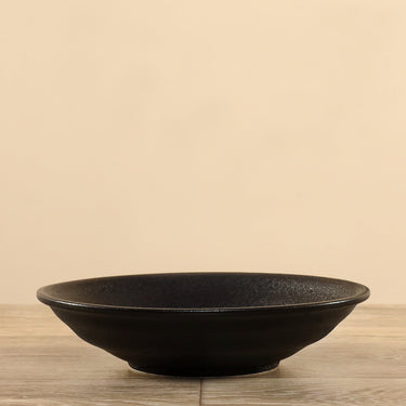 Create a modern tablescape with a deep plate perfect for display or serving. This elegant plate is designed in porcelain and finished in rich black to coordinate with other colors, patterns, and decor styles.