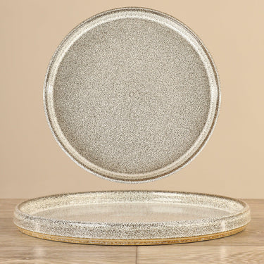 Set a sophisticated table with this porcelain dinner plate. Its generous size and rustic vintage finish make it easy to pair with other plates and serving pieces.